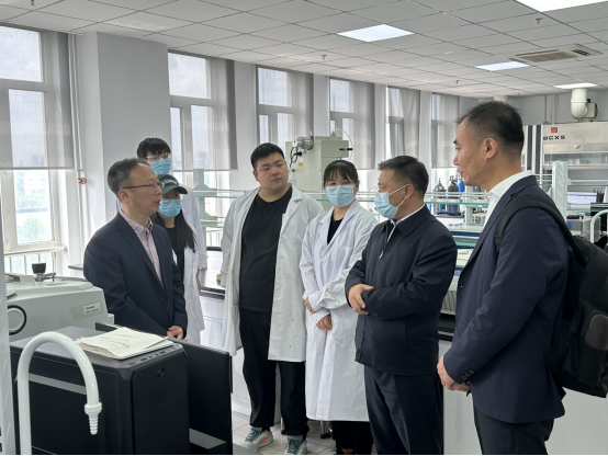 6月1日上午,内蒙古科技厅党组书记冯家举,党组成员、副厅长刘爽,呼和浩特市科技局党组书记、局长李孔燕,呼伦贝尔市科技局局长杨智娟,内蒙古科技厅办公室副主任刘锦涛,国家乳业技术创新中心秘书长冷候喜一行到东北农业大学国家乳业技术创新中心乳品安全与品质研究中心开展考察调研。科技处处长寇胜利,食品学院党委书记潘俊波,院长、国家乳业技术创新中心乳品安全与品质研究中心主任姜毓君参加调研。调研组一行实地走访了乳品科学教育部重点实验室、学校分析测试共享中心,详细了解了我校乳品学科在科研攻关、平台建设、人才队伍和成果转化等方面的建设情况。随后,调研组调研了大豆生物学教育部重点实验室,并就我校大豆育种科研团队与内蒙古呼伦贝尔市的合作进行交流,农学院院长陈庆山参加调研。