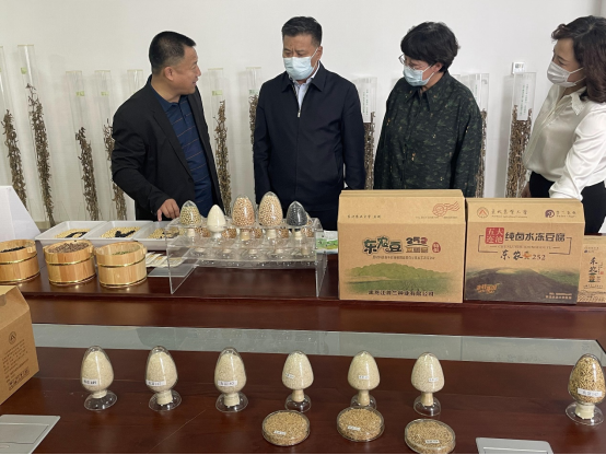 付强代表学校对冯家举一行来学校调研表示欢迎,并向调研组介绍了学校的历史沿革、发展概况,以及在科研平台与人才队伍建设方面的主要举措和取得的成效。他表示,学校一直以来高度重视乳品学科的发展,通过“双一流”建设,不断加强软硬件投入,促进了乳品学科发挥更为重要的支撑作用,希望内蒙古科技厅对国家乳业技术创新中心乳品安全与品质研究中心给予更多的关怀和支持,并期待双方在大豆科研等领域有更深入的合作。