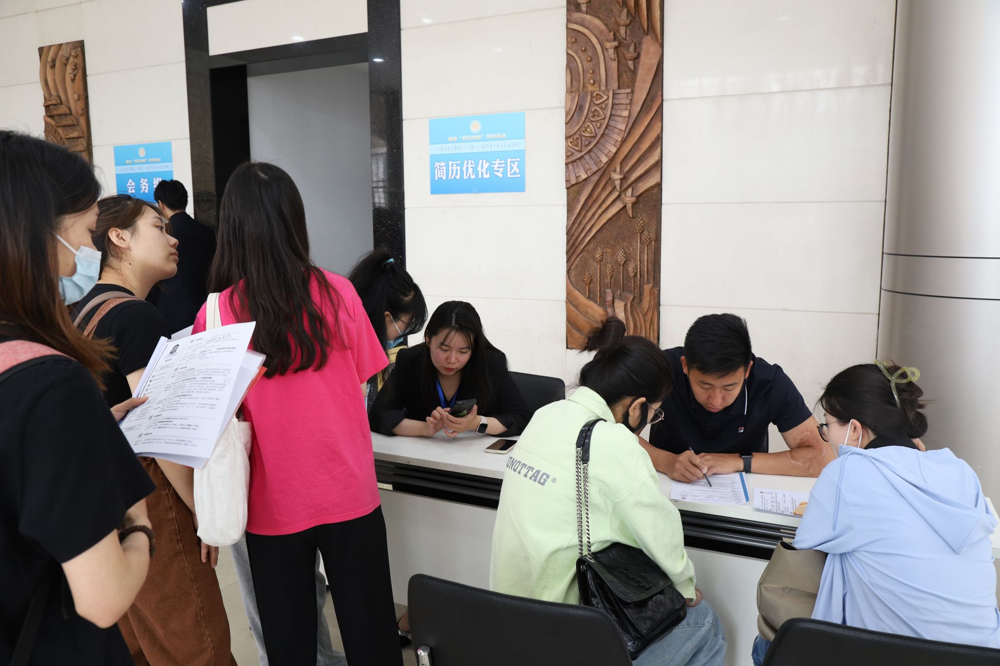 招聘会现场设有简历优化专区,邀请学校简历优化实验室教师为学生提供一对一指导服务。开设“访企拓岗促就业”学院-用人单位洽谈专区,推动各学院与用人单位进一步开展人才培养、校园招聘、院企合作相关事宜。
