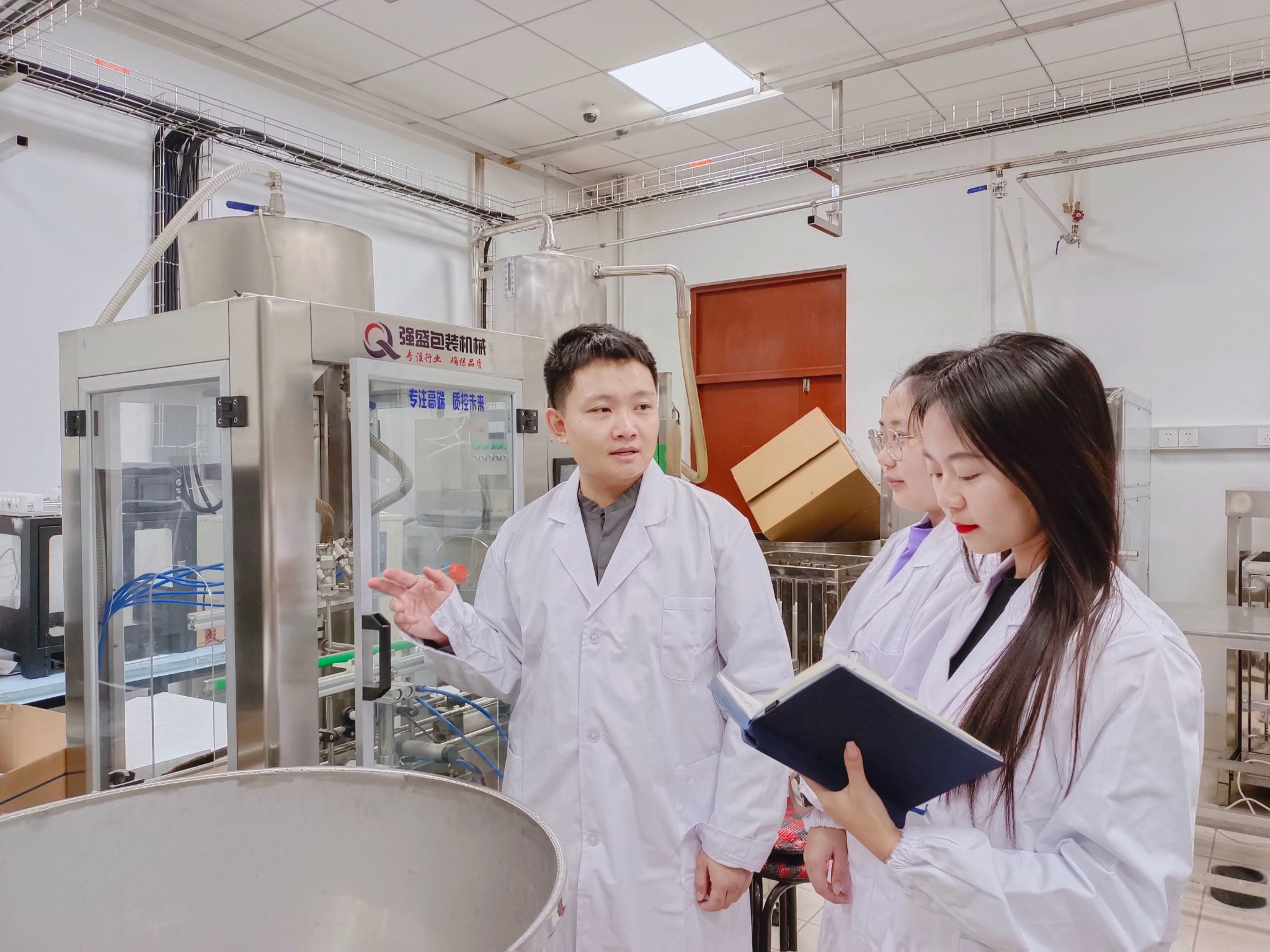 一边指导实验,隋晓楠一边告诉记者,正在研究的“大豆蛋白基植物肉”有望在下半年实现产业化。“我们研究的植物蛋白肉,与传统的素斋不同,蛋白含量在80%以上,这也是江连洲教授2020年度黑龙江省科技奖自然科学奖一等奖的成果。”团队率先首次提出植物蛋白质柔性化加工理论概念,为实现大豆蛋白质绿色加工和高植化利用提供重要的理论依据和技术支撑。研究成果获得黑龙江省自然科学一等奖、黑龙江省高等学校自然科学一等奖、中国食品科学技术学会科技创新一等奖、黑龙江省科技进步二等奖、黑龙江省农业科学技术一等奖、中国轻工业联合会技术发明一等奖等奖项。其中“大豆蛋白质高值化加工与利用技术”入选2020年油料油脂加工行业新技术,在北大荒绿色健康食品有限责任公司、深圳魅味特食品科技有限公司、无限极有限公司得到广泛应用,并取得了较好的社会经济效益。