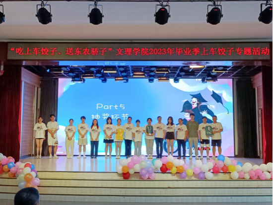 文理学院2023年“吃上车饺子,做东农骄子”活动上,学院为毕业生们精心准备了纪念视频,学院领导深情寄语毕业生,希望同学们挥洒奋斗的汗水,书写人生的华章;本科毕业生辅导员也为毕业生们献上了歌曲《来日可期》。带着学院的美好祝愿,文理学子整装待发,踏上了自己的下一段人生征程。