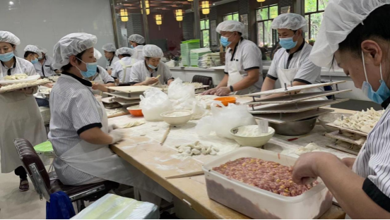 后勤管理处饮食服务中心饺子园员工正在为毕业生包饺子