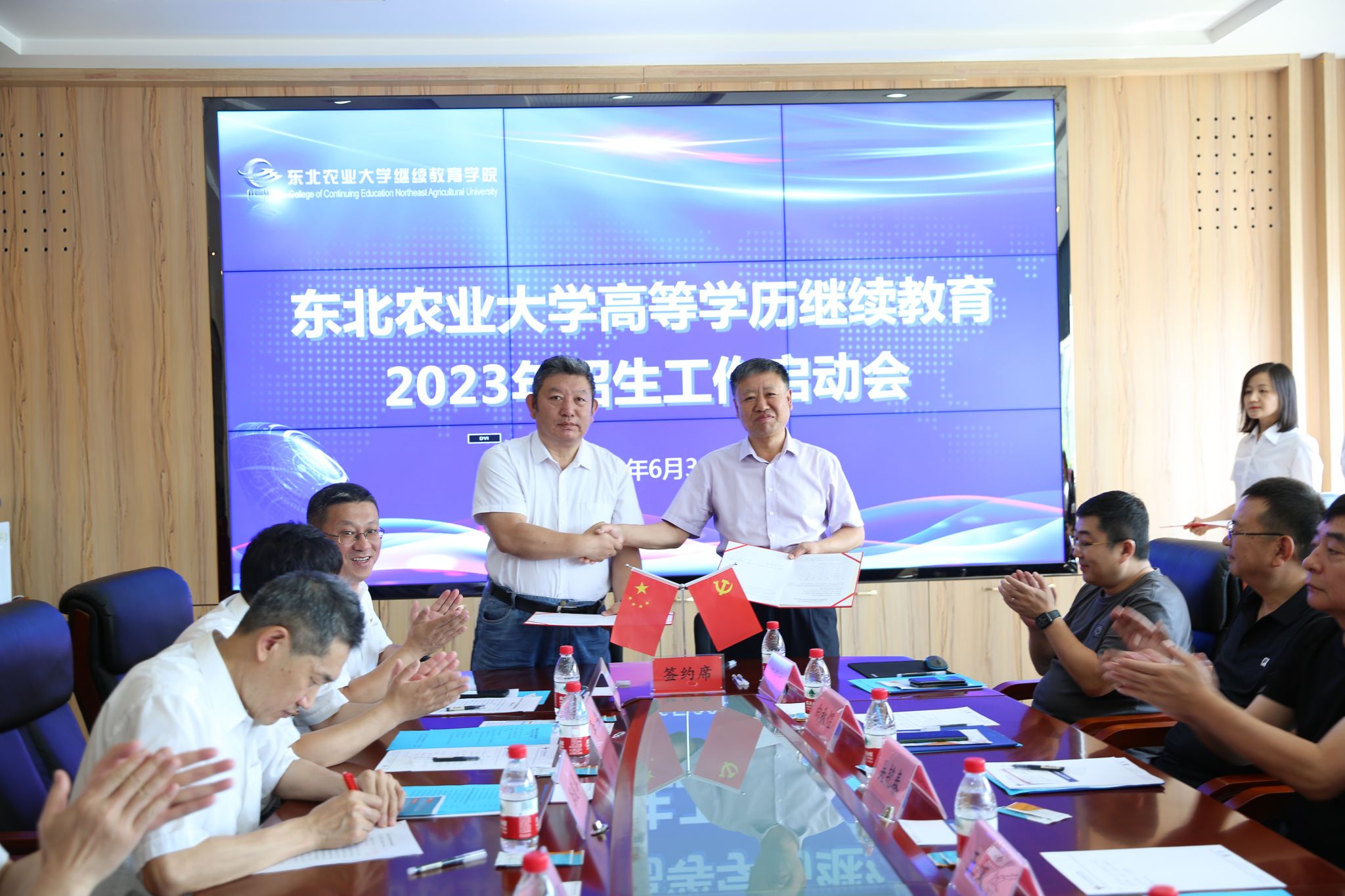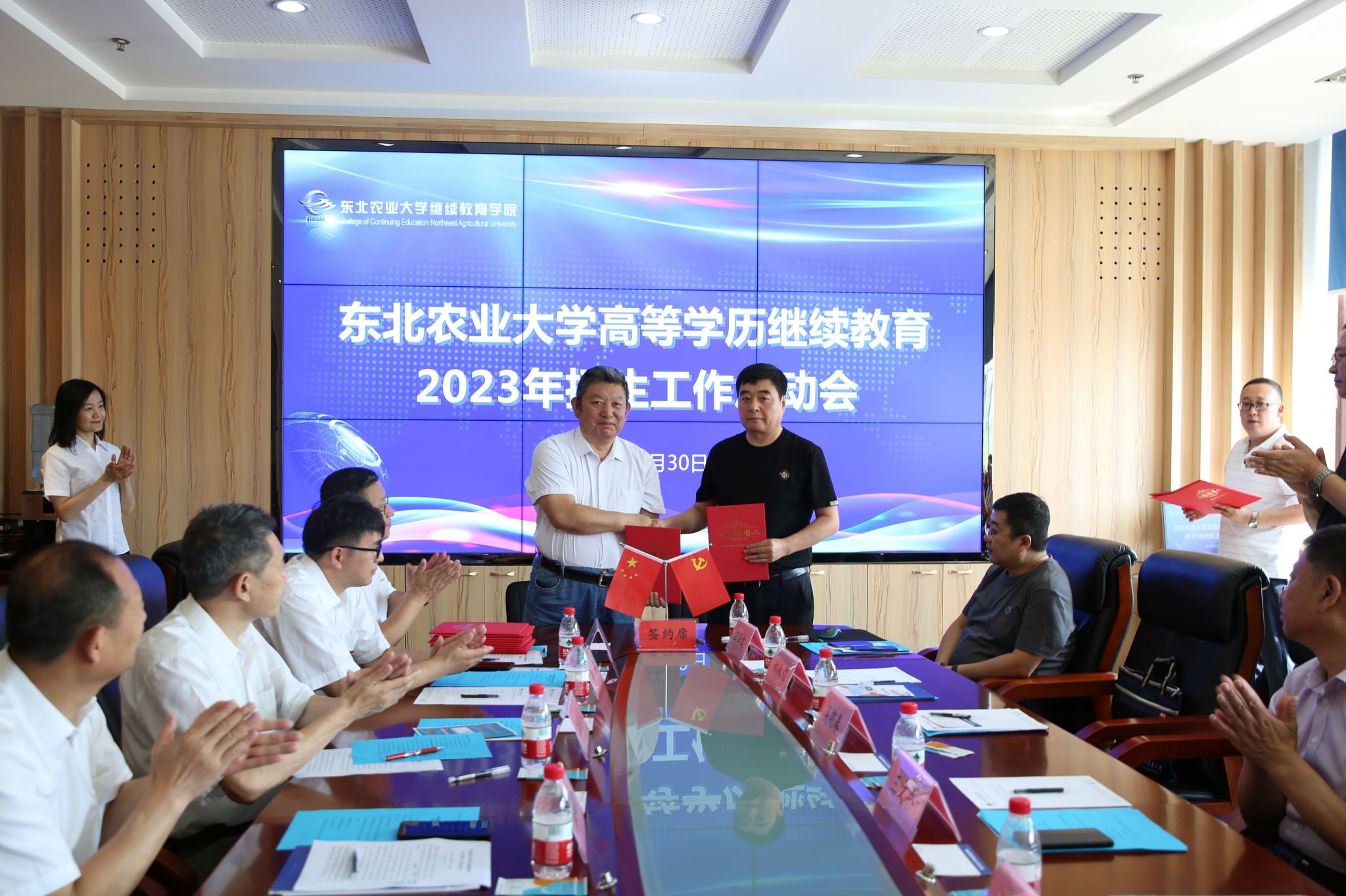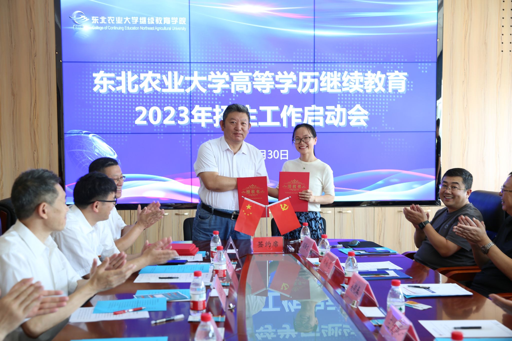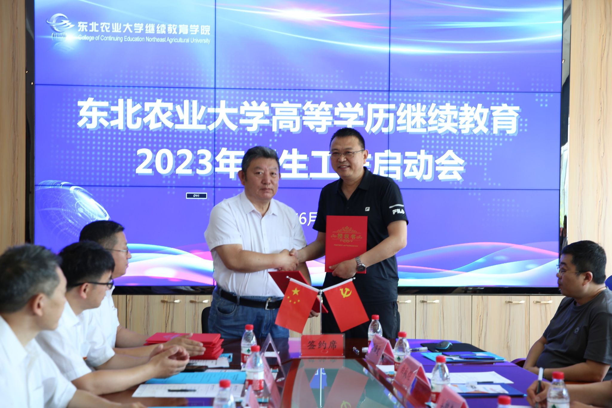 院长王杜春与各校外教学点负责人签署了东北农业大学高等学历继续教育2023年度招生授权书。