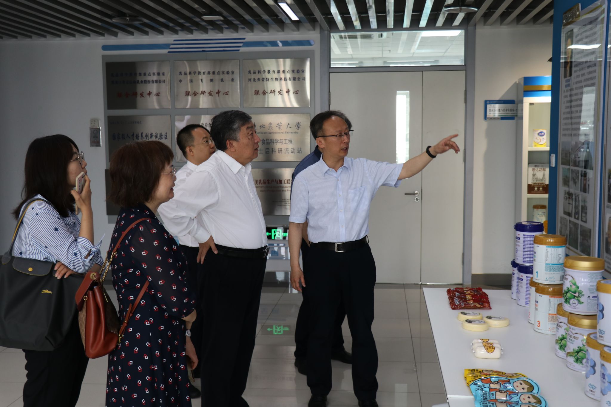 签约仪式前,高峰一行实地走访了乳品科学教育部重点实验室和食品学院实验室,现场听取了姜毓君关于食品学院和乳品学科的发展历程、人才培养、科研教学、学科建设、平台建设等方面的介绍。高峰充分肯定了食品学院近年来所取得的成绩和为乳品行业发展作出的贡献,对食品学院多年来为国家总局审评中心提供的重要技术支撑给予高度肯定。