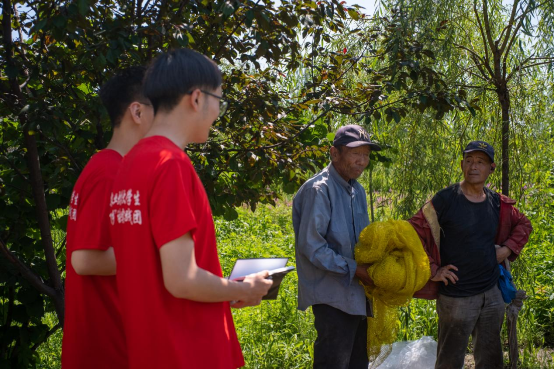 座谈会结束后,实践团队成员到新庄村农户家中,围绕“电商经济”、“林下经济”等方面深入开展调研,通过助力直播带货等方式推动新庄村农产品经济发展。