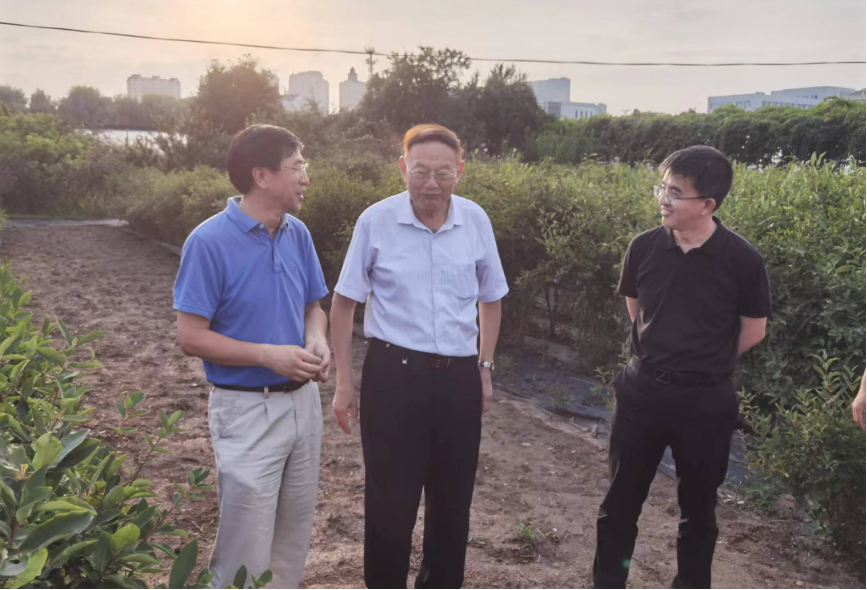 在校内小浆果种质资源圃,罗锡文院士一行详细了解我校小浆果科研平台建设及科研创新情况,霍俊伟教授就国家地方联合工程中心建设、资源引进和改良、品种选育及浆果深加工等向专家们作了详细介绍,并就目前存在的采收机械难题与罗锡文院士进行了深入探讨,罗锡文院士表示蓝靛果采收机械问题可以作为业界一项揭榜课题来好好研究研究。