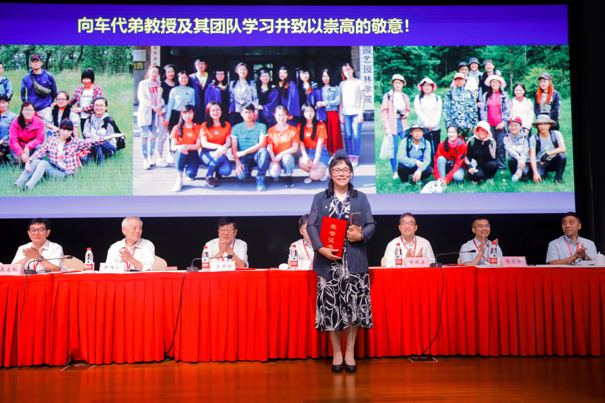 “中国观赏园艺2023年度特别荣誉奖”由中国园艺学会观赏园艺专业委员会、国家花卉工程技术研究中心联合评选,旨在表彰对我国观赏园艺科研、产业发展和对外交流等方面作出积极贡献的工作者。评委会充分肯定了车代弟教授近40年从事的观赏园艺教学、科研和管理工作所取得的成绩。大会给车代弟的颁奖词是:“扎根龙江一甲子,上善若水,胸怀黑土妆锦绣;躬耕香坊四十秋,大爱无疆,梦筑寒地舞长春。锲而不舍比烈焰,志在北国花多半季;润物无声若仙子,心系桃季情暖三生。代马不慕梧桐雨,弟子常修礼乐风。立德立言,无问西东!”