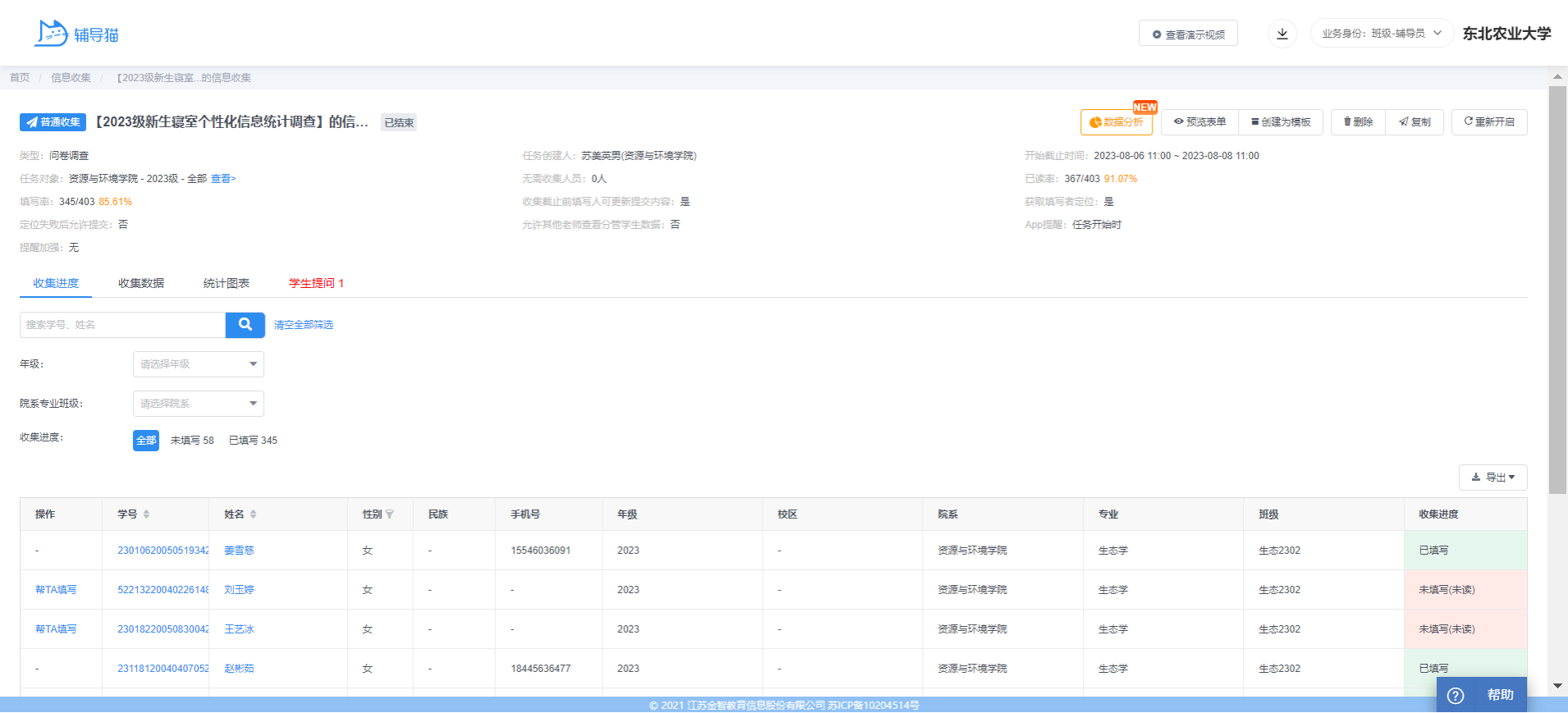 据悉,东北农业大学已连续两年开展新生寝室个性化分配,将思政教育和管理服务更早、更快、更精准地融入大学生"拔节孕穗"的关键时期,实现学生管理“全覆盖”、学生服务“零距离”、学生诉求“快响应”,切实打造一流育人品牌,形成一流育人工作实效。