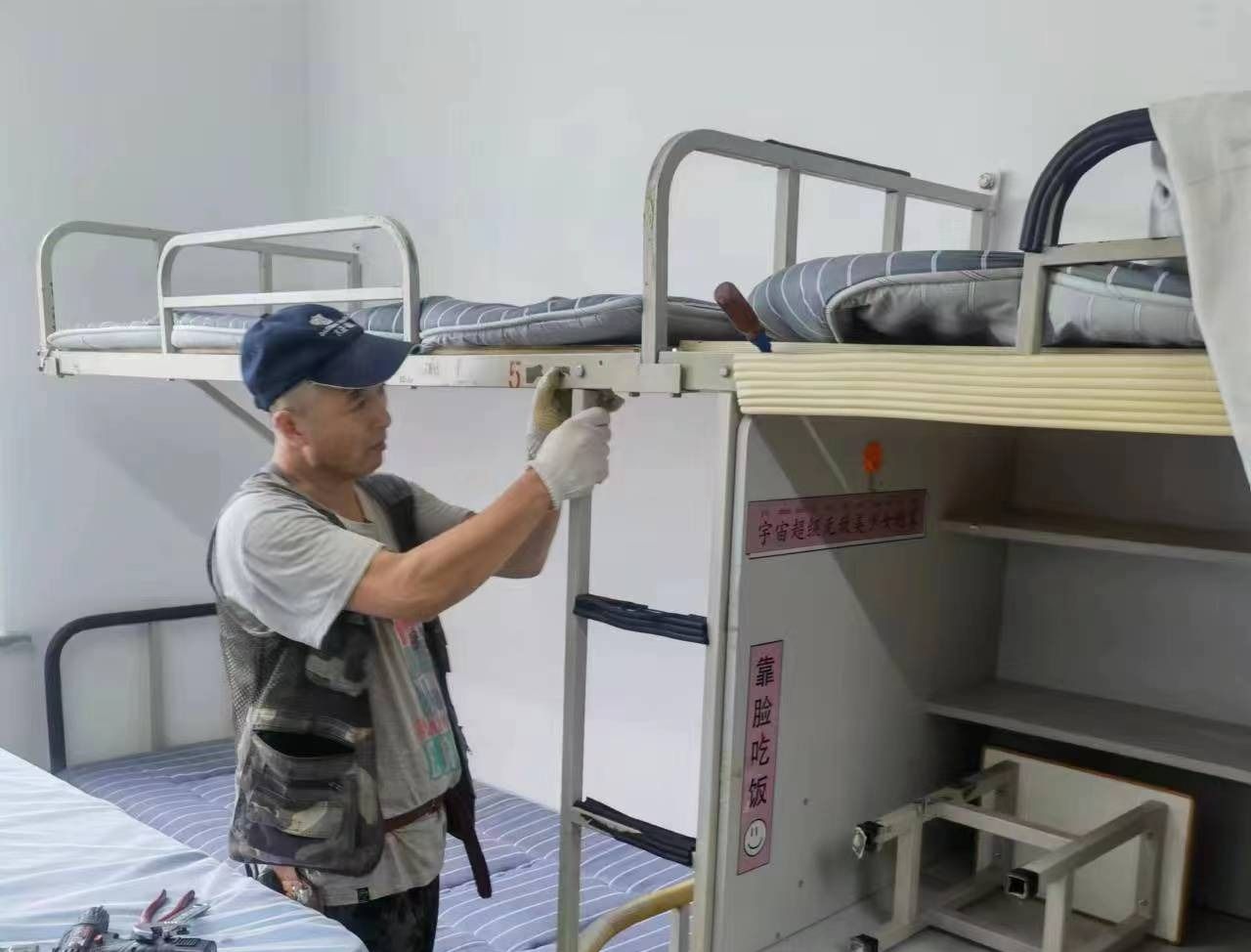 学生公寓管理中心对床铺进行检修