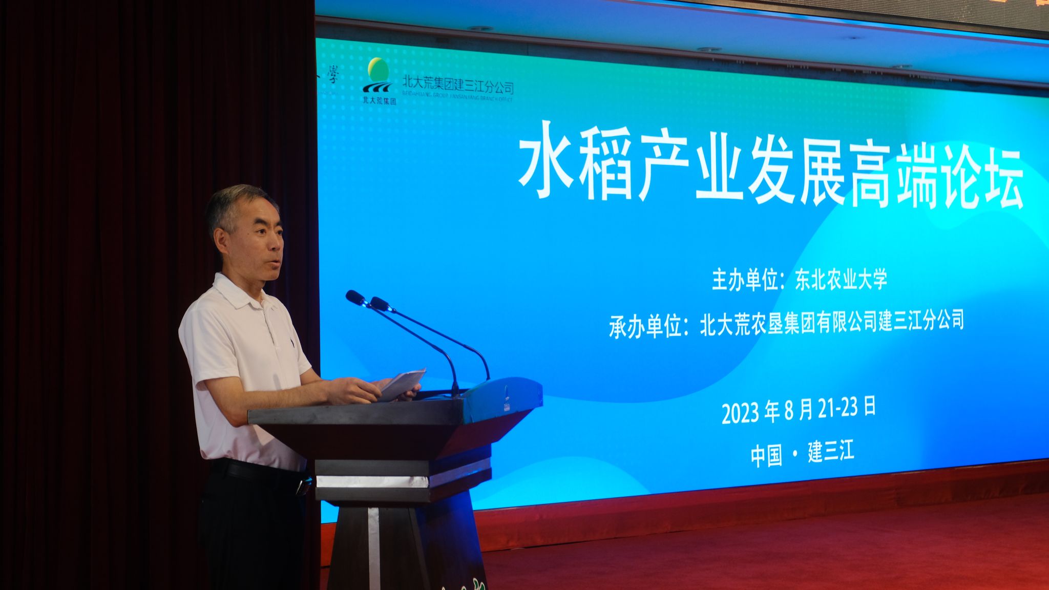 8月21日至23日,由东北农业大学主办,北大荒农垦集团有限公司建三江分公司承办的水稻产业发展高端论坛暨水稻产业体系栽培与土肥研究室2023年度田间观摩会在北大荒集团建三江分公司召开。中国工程院院士、中国农业科学院农业资源与农业区划研究所研究员、国家水稻产业体系岗位科学家周卫,北大荒集团建三江分公司党委书记苍云、副总经理张宝林,我校副校长孙占峰、资源与环境学院党委书记刘刹、科技处副处长初鸿以及来自中国农业科学院农业资源与农业区划研究所、中国水稻研究所、浙江大学、扬州大学、华中农业大学、北大荒农垦集团有限公司建三江分公司、黑龙江省米丰农业科技有限公司等20家高校、科研院所、企业的国家水稻产业体系岗位专家、综合试验站站长及团队成员等共计100余人参加会议。开幕式由初鸿主持。