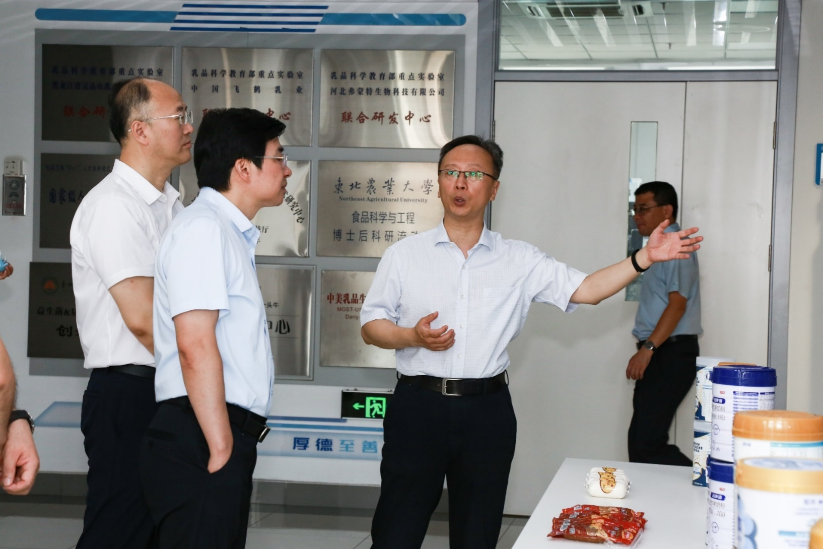 8月18日,国家卫健委食品司副司长田建新、国家食品安全风险评估中心党委书记王永挺、国家食品安全风险评估中心办公室主任马宁、中国疾病预防控制中心营养与健康所副所长张兵、国家卫健委食品司营养处干部王倩男、国家食品安全风险评估中心发展规划处干部张朝正、黑龙江省卫生健康委员副主任方庆伟、黑龙江省卫健委食品处处长王海瑛、黑龙江省卫健委副处级干部张春火、哈尔滨医科大学原副校长孙长颢教授,哈尔滨医科大学公共卫生学院营养与食品卫生学教研室主任牛玉存教授一行到东北农业大学围绕国家食品安全与营养健康联盟建设进展情况进行调研。我校校长付强,食品学院党委书记潘俊波、院长姜毓君、科学技术处副处长贾树英参加调研。