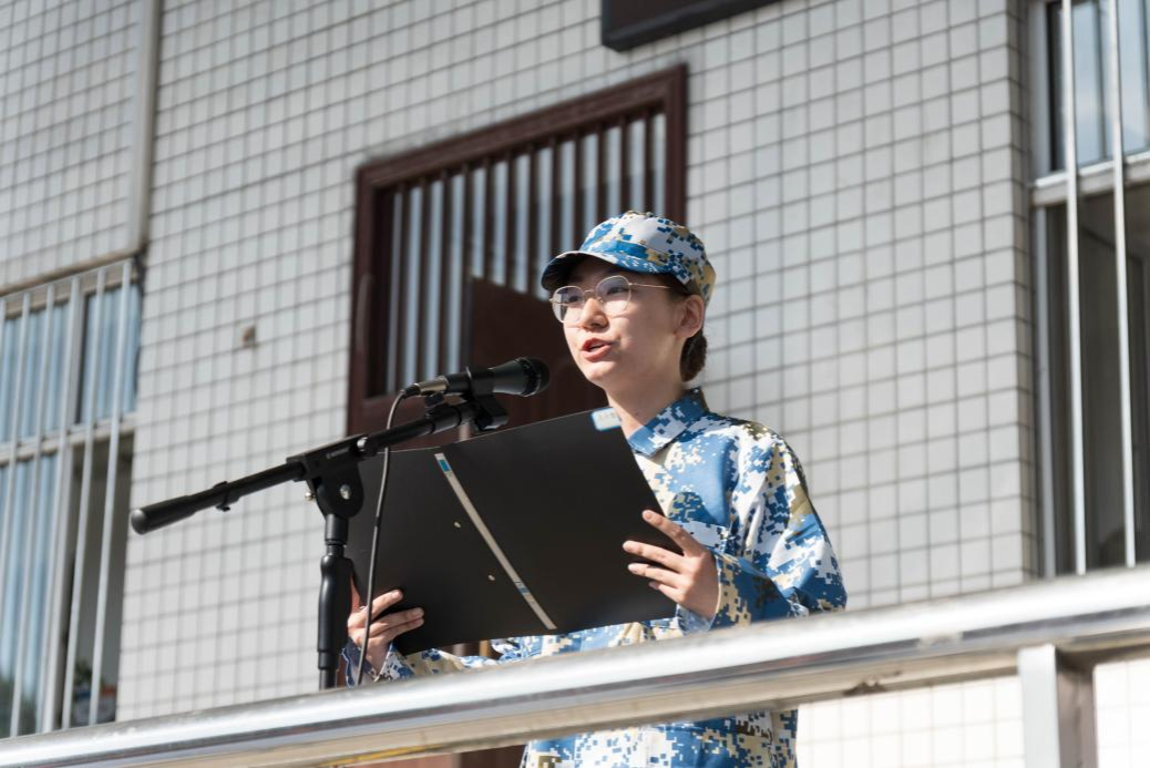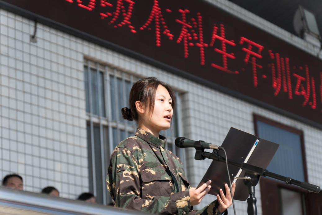 生命科学学院新生田明轩代表全体受训学生发言。她表示要认真上好大学第一课,积极投入军事训练,通过军训强健体魄、磨炼意志,在军训中养成良好习惯,为今后的大学生活打好基础。