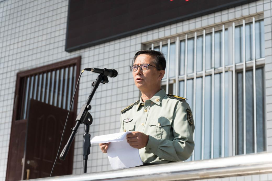 新生军训师政委、校党委副书记王泽方作动员讲话