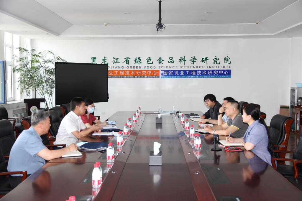 6月27日,哈尔滨市工信局二级巡视员张国华、食品工业处处长沈江岩、副处长黄璐一行深入我校黑龙江省绿色食品科学研究院,围绕如何落实黑龙江省产业振兴行动计划,加快推进哈市食品产业向中高端迈进,实现提质增效进行了深入交流。我校黑龙江省绿色食品科学研究院党委副书记高放,副院长高汉峰、杨玉琢,办公室主任杨文敏,战略规划团队负责人李孝忠参加了交流会。