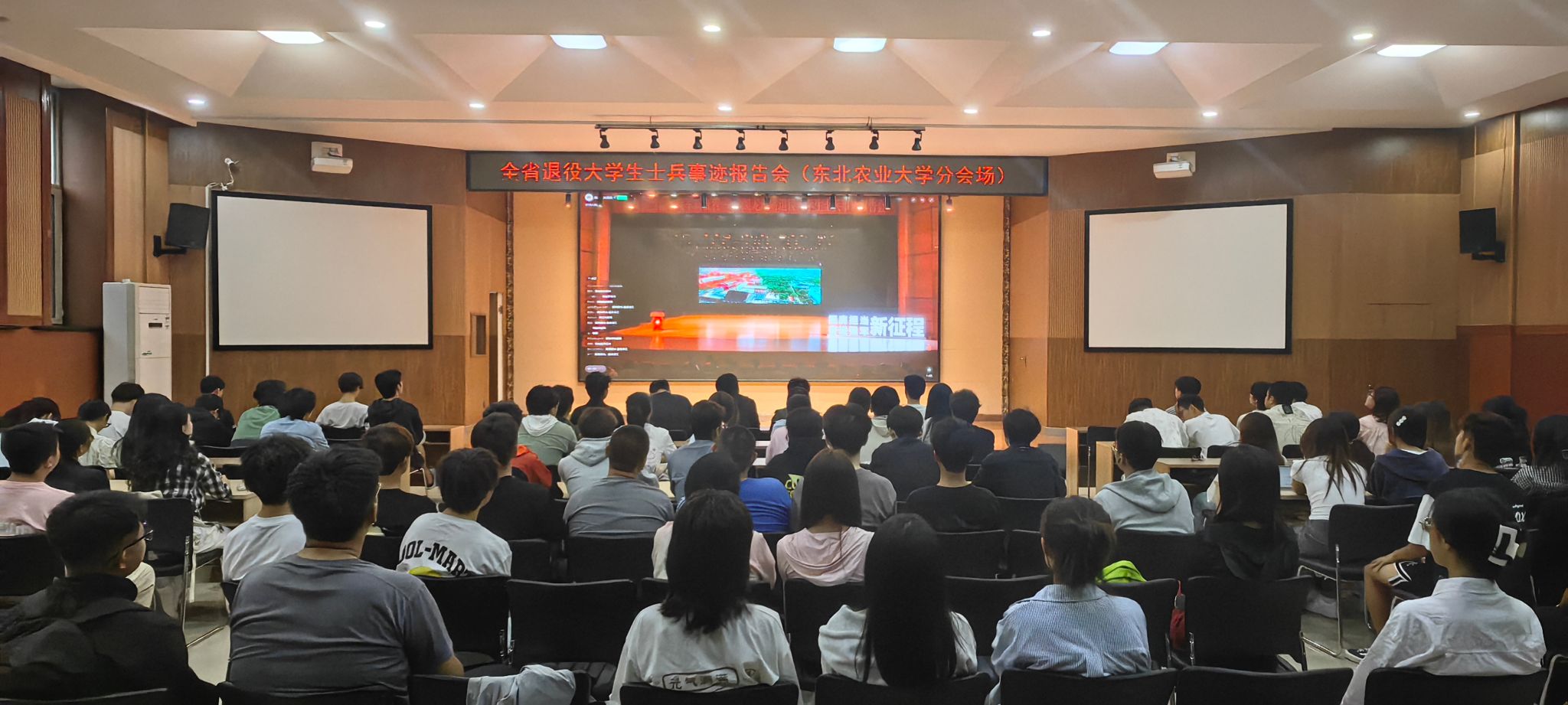 此次报告会由黑龙江省教育厅、黑龙江省人民政府征兵办公室主办,共青团黑龙江省委员会、黑龙江广播电视台协办,来自东北农业大学、哈尔滨工业大学、哈尔滨工程大学、黑龙江大学等高校的6位退役及现役大学生分享了自己的励志故事和奋斗事迹。东北农业大学优秀退役大学生士兵代表、公共管理与法学院行政2302班王科达的事迹在全省高校评选中脱颖而出,并在会上以“奋力抒写挺膺担当的青春篇章”为题,围绕当代青年学子立志从军报国、军旅生涯的历练成长、以实际行动筑梦国防等内容展开宣讲,生动地展现了我校退役大学生士兵“艰苦奋斗,自强不息”的优良风貌和“忠诚祖国、热爱人民、献身国防”的责任与担当。同时,学校也组织集中线上观看,将此次宣讲作为国防教育和征兵宣传的重要载体。