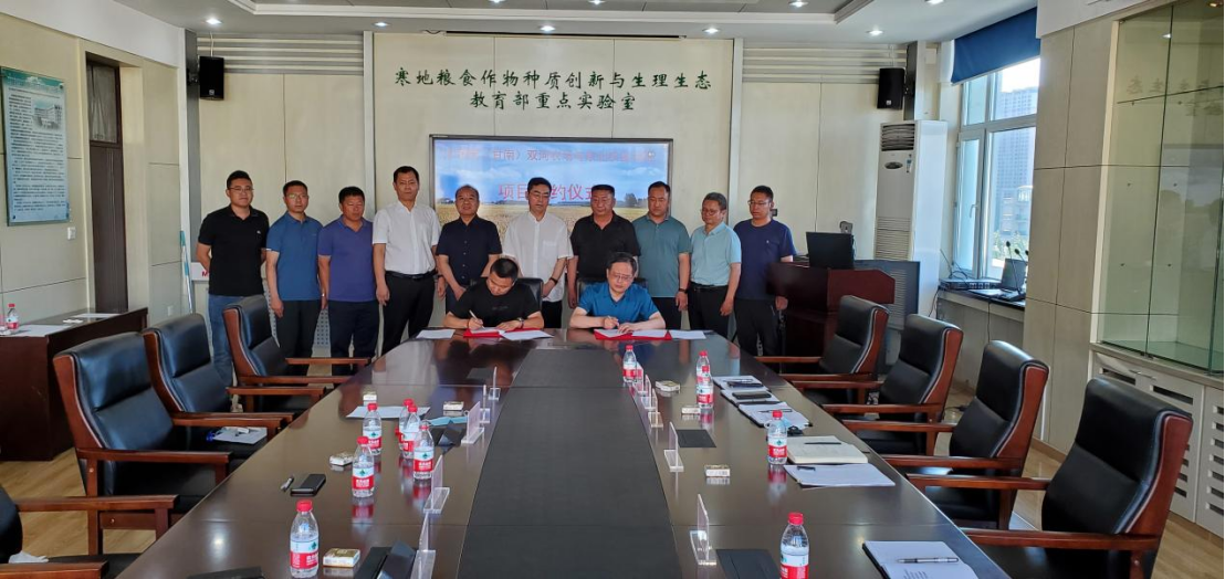 6月30日,北京市(甘南)双河农场副场长朱兴华、副总农艺师高焕勇、场长助理田辉波、场长助理潘龙、农科所所长张志刚、农科所副所长龙力刚一行赴我校签署“特色型东北粳稻品种选育”技术开发合同。我校副校长邹德堂、新农村发展研究院院长朱志猛、农学院副院长王敬国、农学院青年教师刘化龙、郑洪亮等出席签约仪式。签约仪式由朱志猛主持。