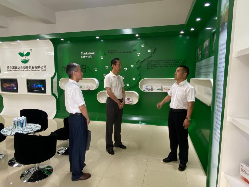 李长生一行在校友企业哈尔滨绿达生动物药业有限公司走访
