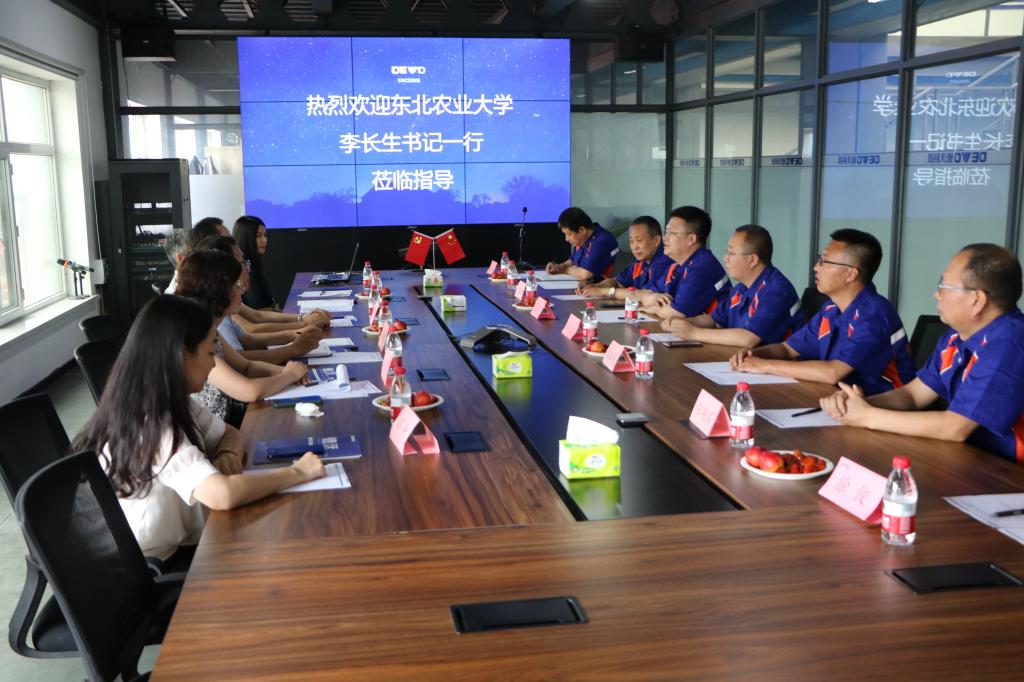 李长生详细了解企业发展历程、文化内涵、优势领域、公司业绩等情况,并表示,德沃集团根植龙江,致力于中国农机研发和生产,打造了先进的企业文化,发展稳健,目标宏大,希望校企双方进一步加强合作,特别是在人才联合培养、科研成果转化方面紧密配合,企业应注重工程、农学、农艺多学科人才引进,积极把握母校最新科研成果转化时机,将师生专利成果就地转化为生产力,实现校企共赢。李长生代表学校祝愿德沃集团越办越好,在国家级高新技术产业领域担当作为,为龙江全面振兴全方位振兴做出积极贡献。