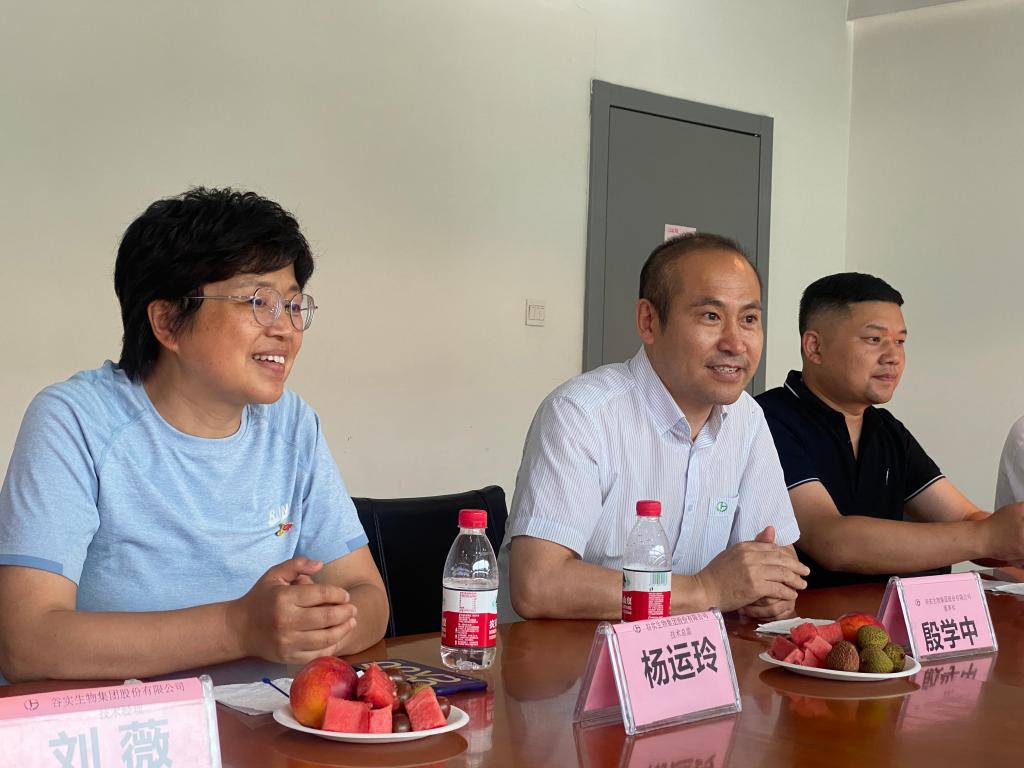 殷学中向李长生一行表示热烈欢迎,介绍了谷实生物集团的发展历程,重点介绍了业务情况、企业管理和文化及重点发展方向、东农校友在企业工作情况等。他深情回忆了自己在东农学习和生活的经历和创业的艰辛,表达了对母校的深厚感情。他表示,畜牧产业的现代化发展建设离不开与高校在科研创新、技术支持、人才输送等多方面合作,希望未来在技术支持、科研合作、人才招聘等方面加强与母校开展合作,充分发挥校企协同育人效能,为母校毕业生提供更多工作岗位的同时,实现谷实生物集团创新发展。