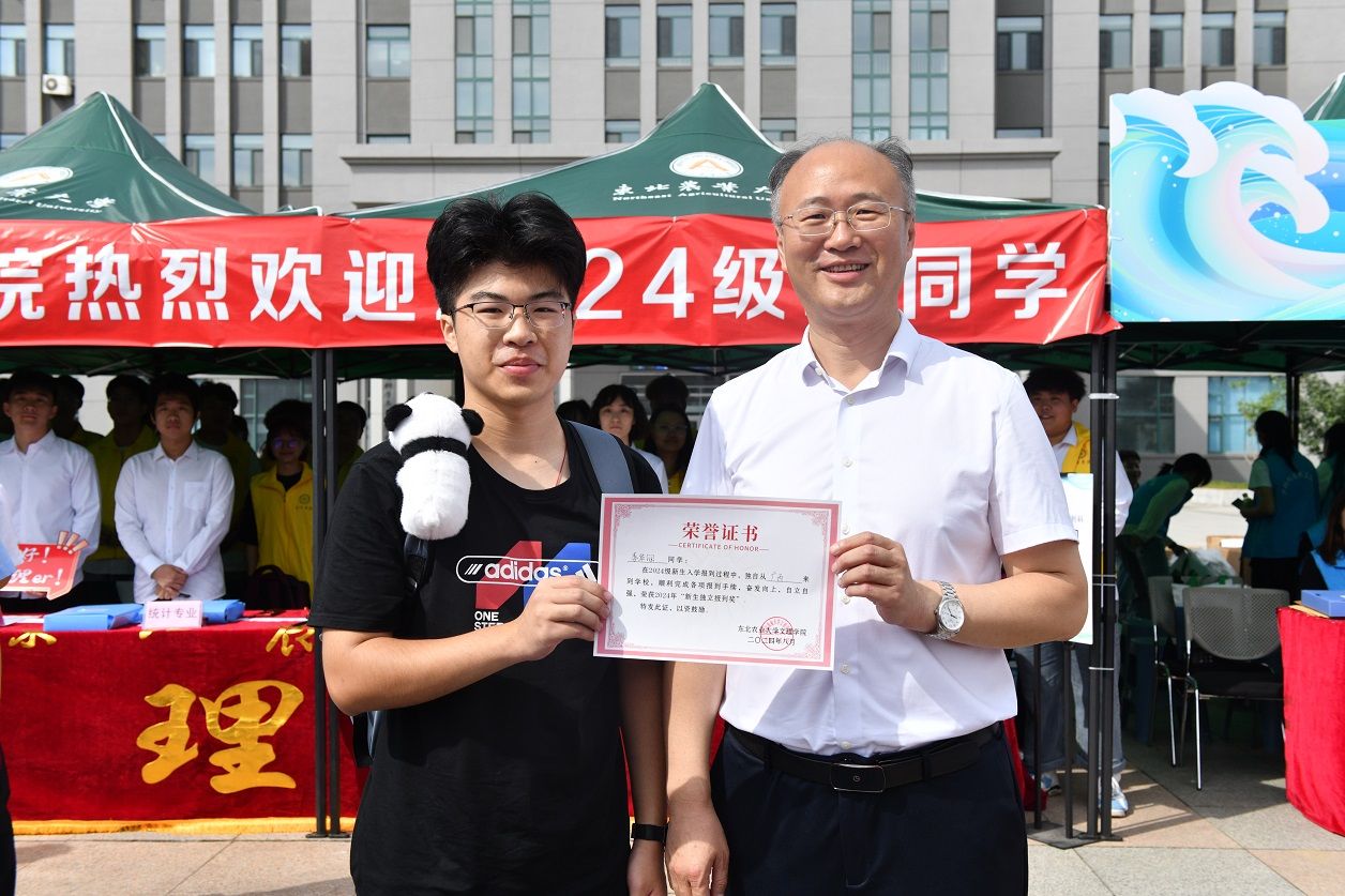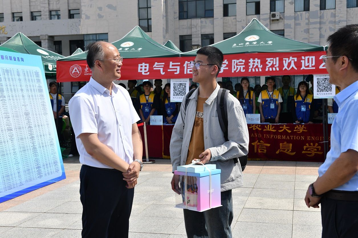 四时俱可喜,最好新秋时。热闹喜庆的东农校园,总有新的故事值得期待。8月29日,是东北农业大学2024级新生报到的日子,校长付强、校党委副书记贺景平、刘晓峰,副校长刘忠华来到学校迎新现场,亲切看望新生及家长,慰问奔波在迎新一线的师生员工。
