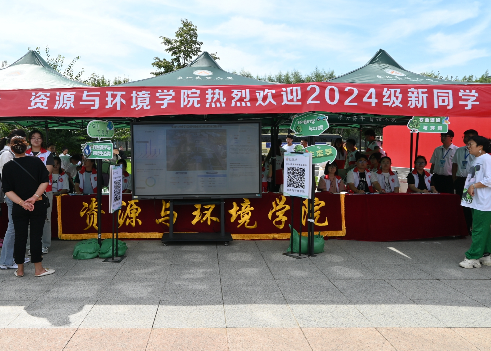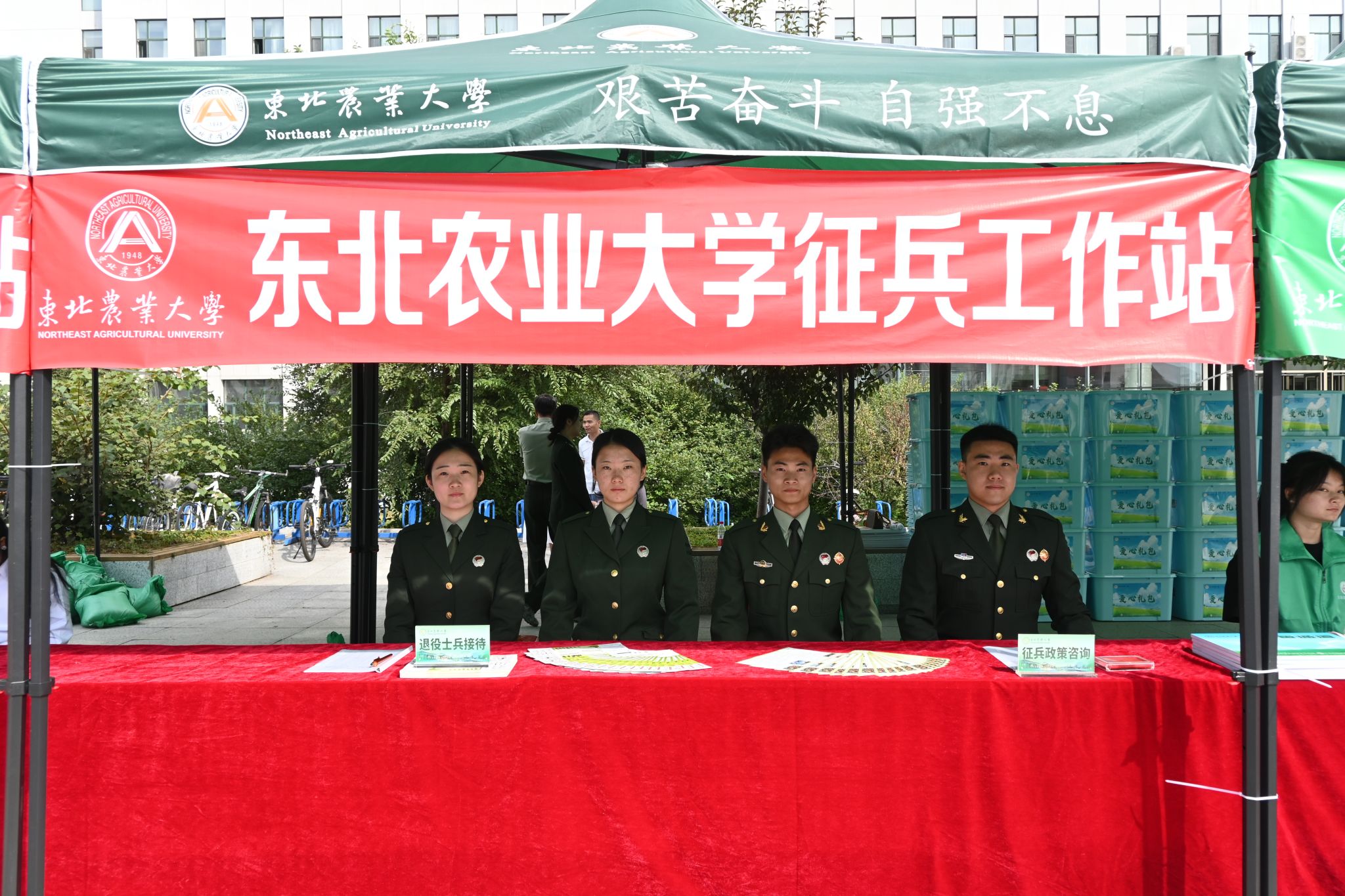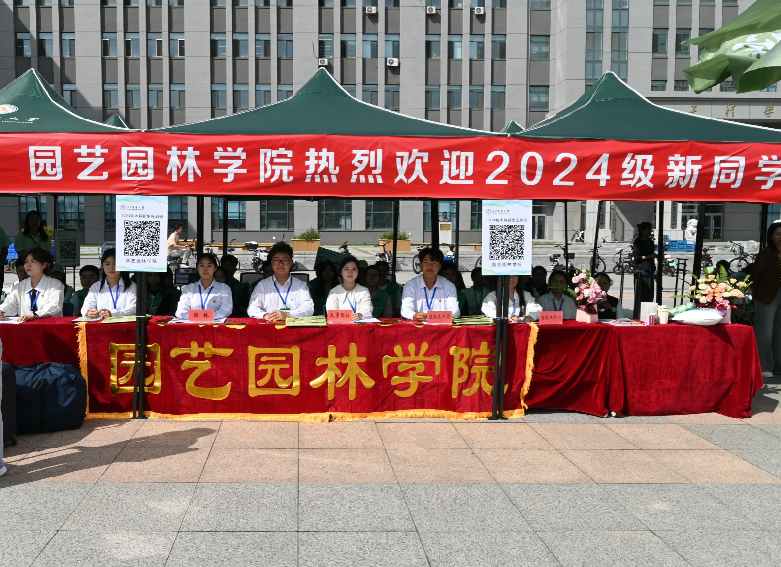 迎新现场布置了丰富多彩的展板、整齐排列的帐篷,充满新意的文创品,同时,各学院围绕学科特色、学院文化等,精心策划了一系列别出心裁、趣味横生的迎新活动。在迎新现场,还通过优秀毕业生风采展示、设立打卡拍照点等文化活动,为新生留下美好回忆,新生们纷纷在心愿墙留念、与各式各样的镂空板合影。专属新生的“东农心意”还不仅于此,学校也为每位新生们精心准备了新生大礼包。军训服、定制帆布袋、纪念polo衫、校徽……这份独一无二的心意,深深留在每一位新生的“东农初印象”之中。