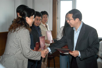 省委宣传部宣教处处长袁克敏在会上宣读了《关于表彰2006年度全省大中专学生志愿者暑期文化科技卫生“三下乡”社会实践活动优秀团队、先进个人的决定》。省委副秘书长李显刚、省教育厅副厅长康保林分别为优秀团队和先进个人颁奖。