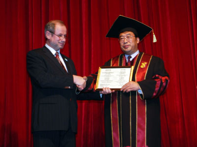 李庆章校长回顾了我校与俄罗斯太平洋国立大学10年间在联合办学方面取得的成就,表示该荣誉是两校多年来友好合作的结晶和见证。他说,我校与俄罗斯太平洋国立大学前身哈巴罗夫斯克国立技术大学于1996年开始联合培养本科生,是中国国内最早与俄罗斯开展联合办学的高校之一。10年来,双方本着“平等互利”的原则,积极开展多层次、多领域的合作,在联合培养本科生项目上取得了丰硕的成果,现已培养中国毕业生214人、俄罗斯毕业生94人,毕业生培养质量得到了中俄双方的高度认可,成为中俄高等教育合作领域的典范。