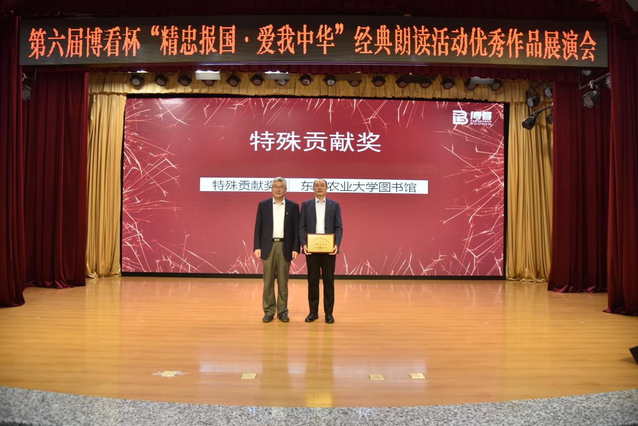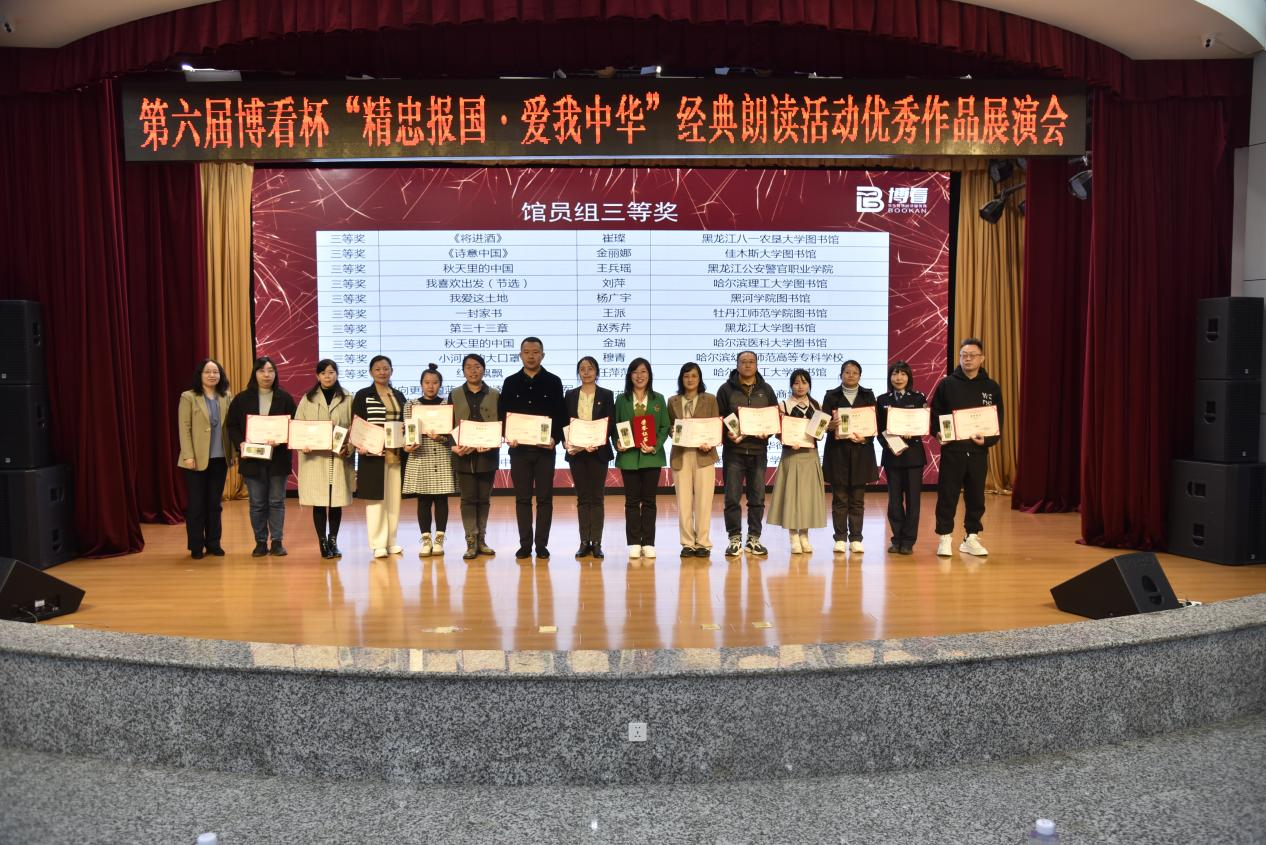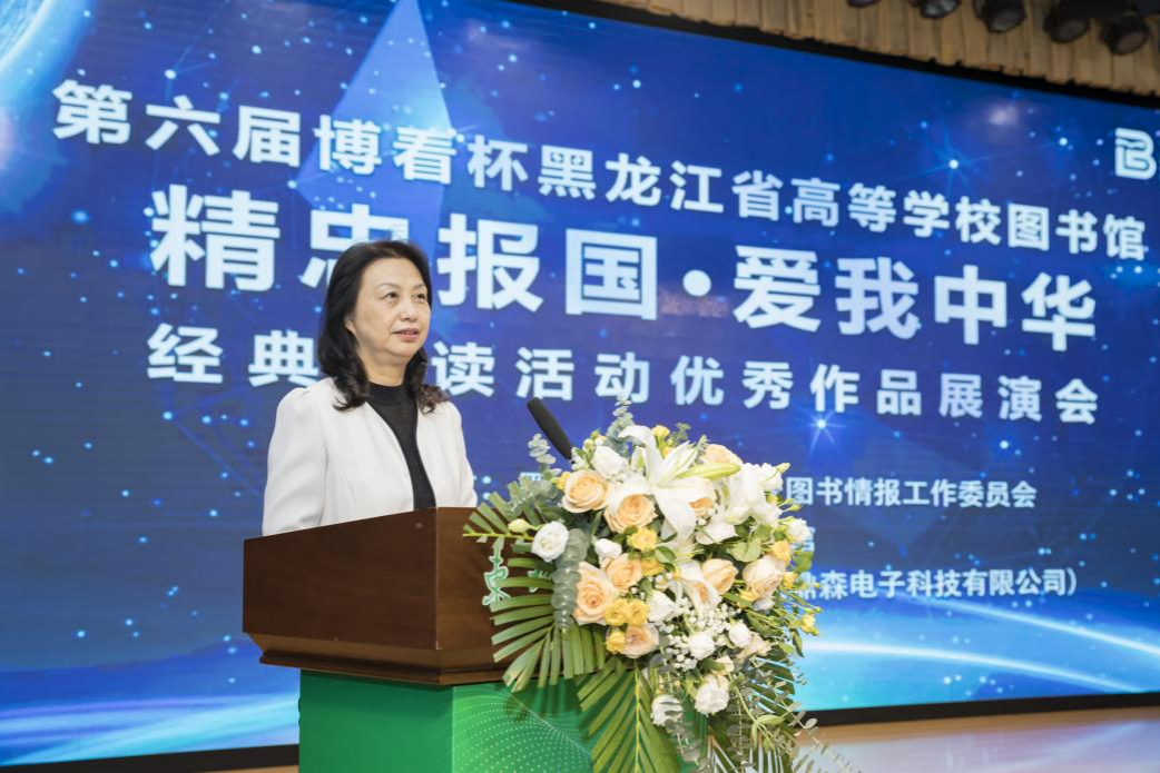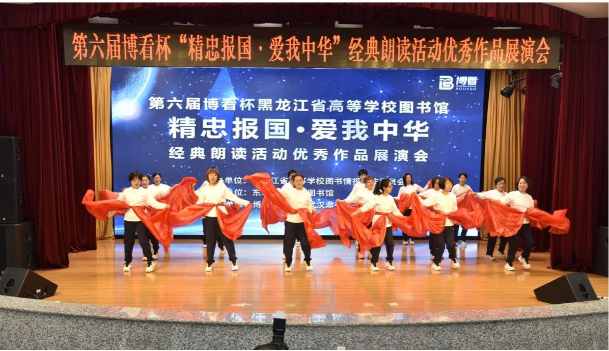10月11日上午,第六届博看杯黑龙江省高等学校图书馆“精忠报国·爱我中华”经典朗读活动优秀作品展演会在学校图书馆一楼报告厅举办。本次活动由黑龙江省高等学校图书情报工作委员会主办,东北农业大学承办,博看数据库协办,是面向全省高校图书馆馆长、馆员和学生开展的第六届博看杯“精忠报国·爱我中华”经典朗读活动的成果总结和汇报演出。来自全省40余所高校的200余名馆长、馆员代表参加活动。活动由黑龙江省高校图书情报工作委员会常务副秘书长、哈尔滨工业大学图书馆研究馆员、黑龙江东方学院图书馆馆长郭健民主持。