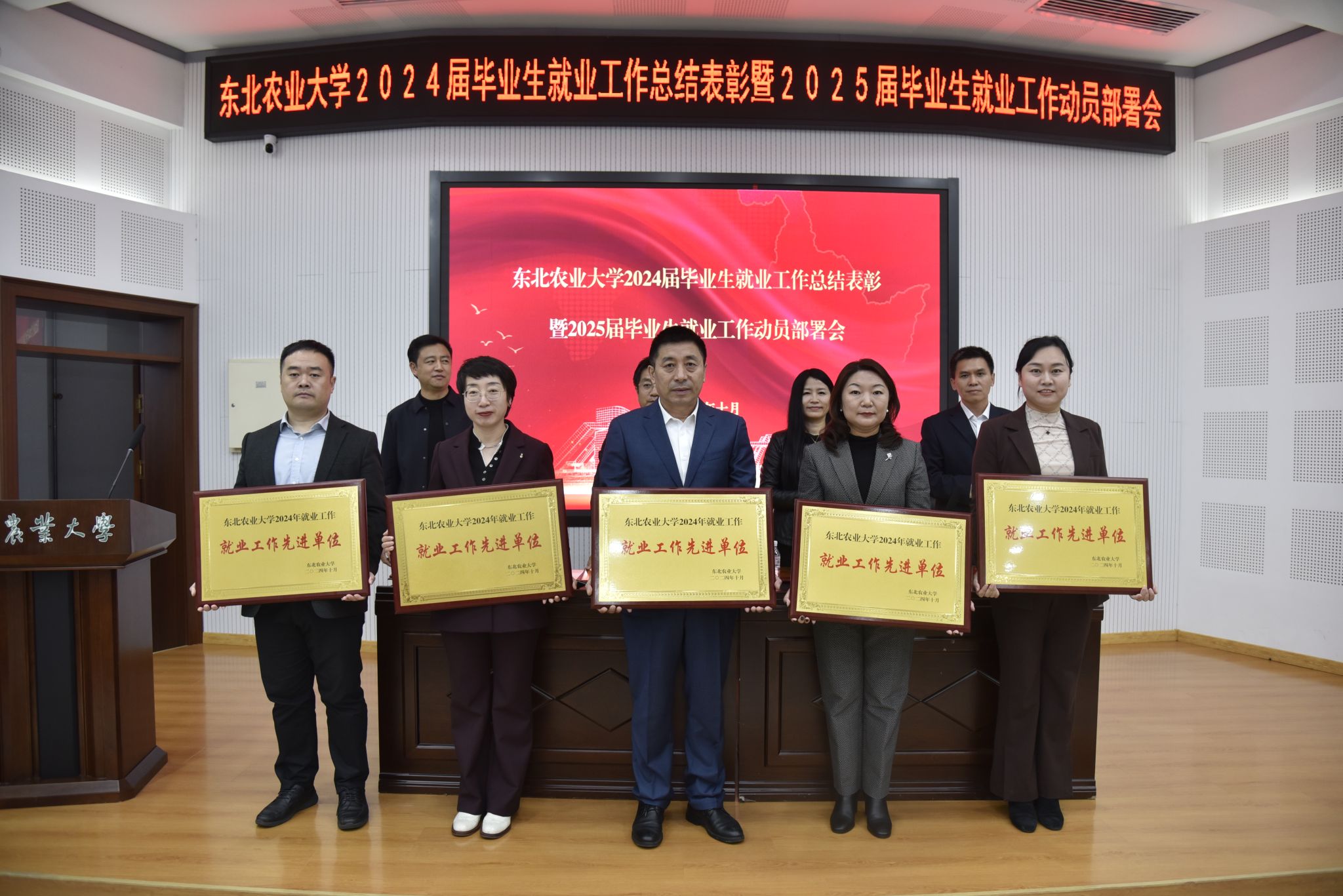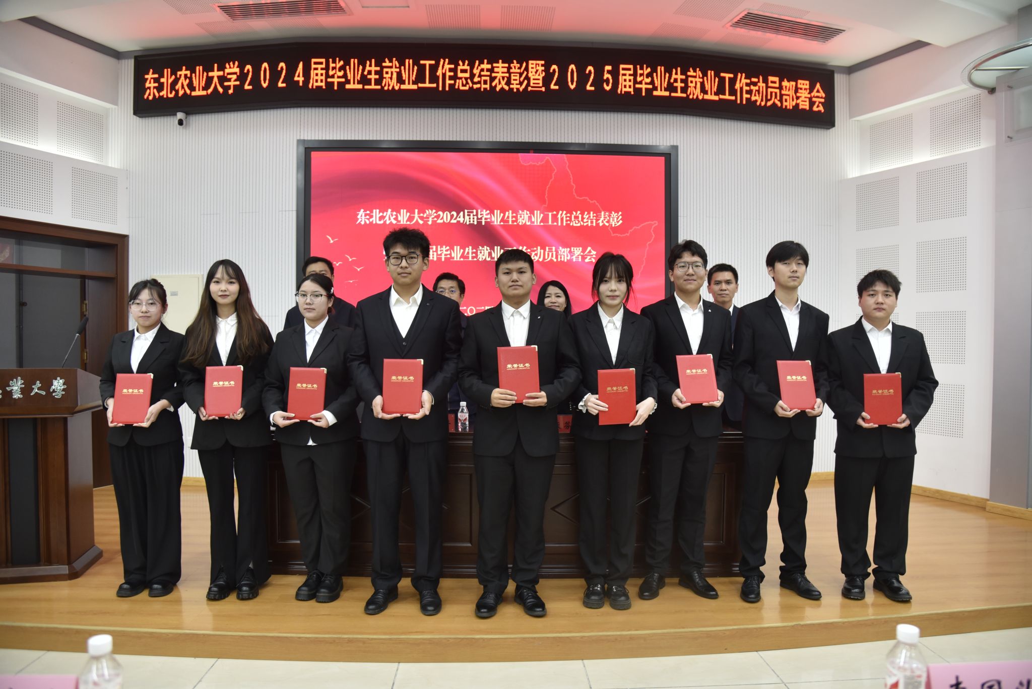 招生就业处副处长李巍宣读了《东北农业大学关于表彰2024届毕业生就业工作先进单位和个人的决定》,授予10个学院“2024年就业工作先进单位”荣誉称号;授予5个学院“2024年就业工作提升奖”;授予28名个人“2024年就业工作先进个人”荣誉称号;授予11名同学“2024年毕业生就业先锋”荣誉称号。