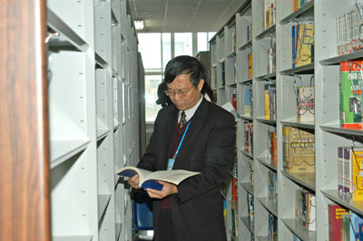 会后专家考察了我校图书馆外文图书借阅室,人文学院,多媒体语音室等。
