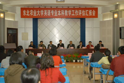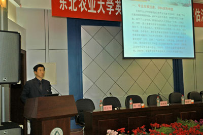我校校长助理徐建成作了《强化能力,突出特色,努力培养应用型英语专业人才》主题报告。他分别从“专业发展,学科优势”、“学科定位,专业特色”、“教学质量,学生就业渠道”、“建设目标,发展前景”等方面深入、细致地向专家组领导汇报了我校英语专业本科教学情况。他在报告中指出:东北农业大学是国家“211工程”重点建设大学,经过两个五年的建设,已确定了准确的办学定位和科学的建设规划。英语专业通过多年办学摸索和实践,英语专业形成了明显的优势和特色。英语专业将以培养应用型人才为目标,依托学校的农科优势,以农业科技英语翻译和农业经贸英语翻译为特色,夯实英语语言文学基础,强化英语专业技能训练,构建宽口径、应用型人才培养模式,逐步将英语专业建设成为国内同类院校一流,具有鲜明农科特色的高等农业院校英语专业。