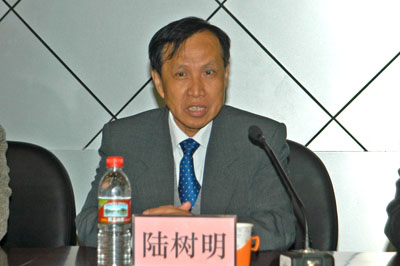 评估专家组副组长、解放军国际关系学院陆树明教授主持英语专业本科教学评估工作评估报告会。专家组组长陈建平教授讲话。