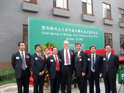 10月10日,美国密西根州立大学(Michigan State University)中国区办公室成立仪式在北京举行。密西根州立大学常务副校长Kim A. Wilcox博士出席会议并致词。我校副校长包军代表我校出席仪式。仪式由密西根州立大学国际学院院长Jeffrey Riedinger主持。