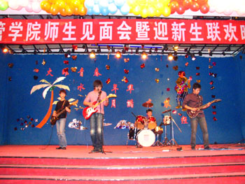 演出包括乐器合奏《赛马》、京剧选段《早也盼 晚也盼》、诗朗诵《我爱你,中国》等精彩节目,观看节目的同学们热情高涨,掌声不断。在节目中间的抽奖环节,付桂珍书记与同学们亲切互动,共同选出了“经管学院幸运星”。最后,晚会在“蔓延”乐队的歌声中拉下了帷幕。