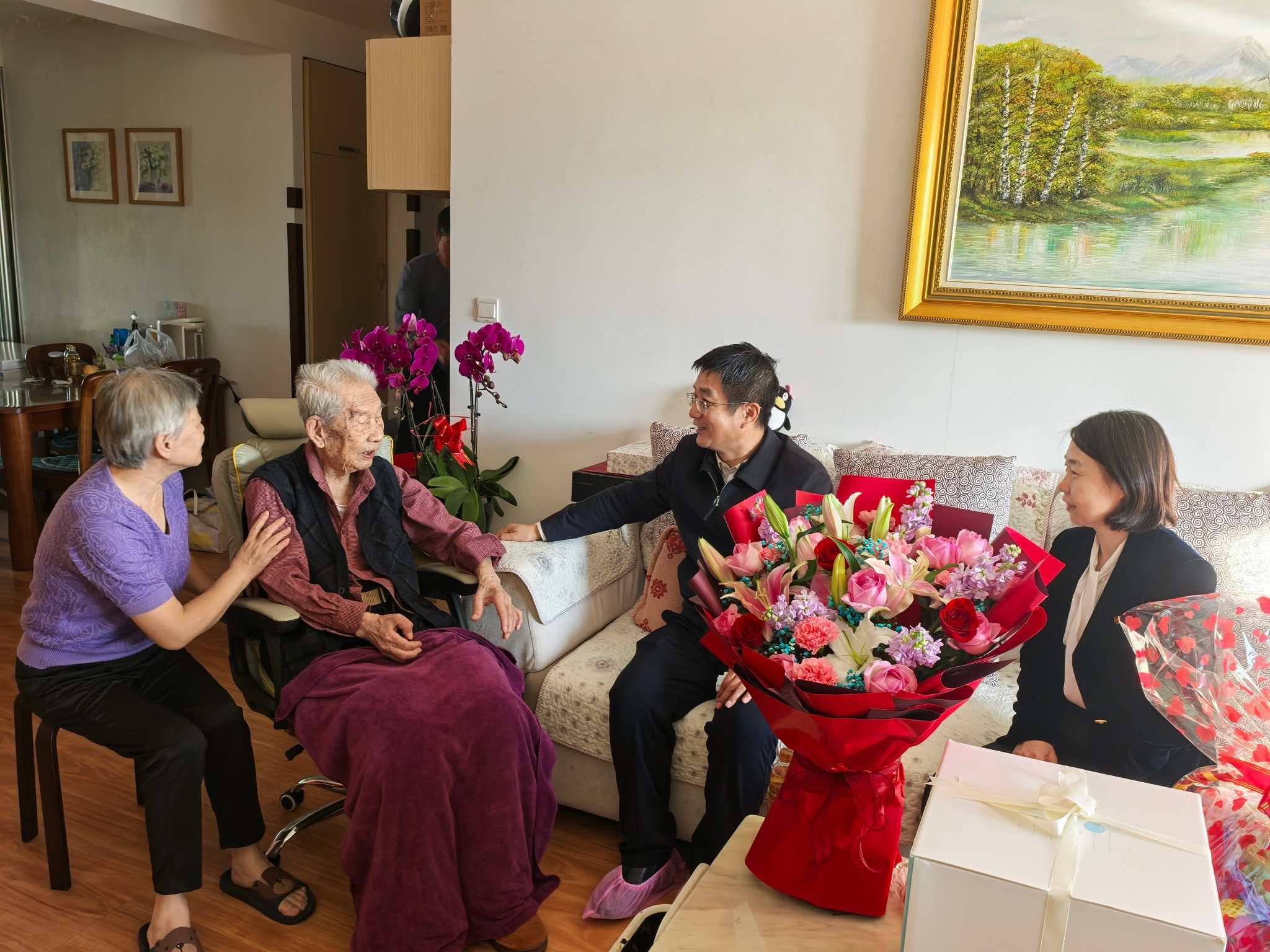 期颐之岁,贺寿尊贤。在东北农业大学离休干部李全同志百岁寿辰之际,学校党委副书记贺景平携离退休工作处处长兼党委书记肖冬梅、副处长李晴一行,带着满满的关怀与敬意,专程来到李全老师家中,为老人送上最诚挚的生日祝福。