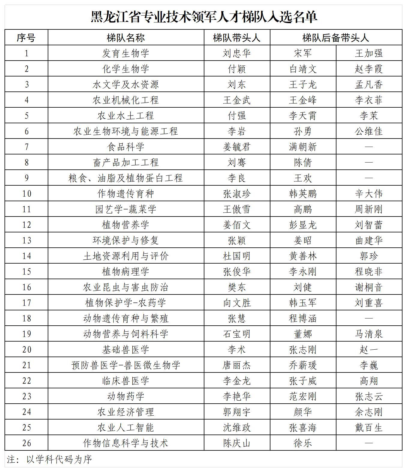 近日,黑龙江省人力资源和社会保障厅下发了关于公布黑龙江省专业技术领军人才梯队入选名单的通知,东北农业大学组织申报的发育生物学、农业水土工程、食品科学、临床兽医学、农业经济管理、作物信息科学与技术等26个梯队通过省人社厅的资格审查、专家评审、网上公示,在全省众多申报学科中脱颖而出,获批为黑龙江省专业技术领军人才梯队,获批梯队覆盖了学校所有一级学科及交叉学科,获批率达90%,远高于全省平均获批率。