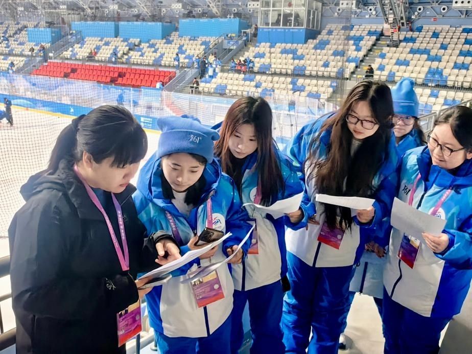 服务亚冬,使命光荣。学校党委高度重视亚冬会志愿者招募选拔工作,自2024年3月启动以来,坚持科学谋划、高位推动、协同联动,从运动员村、亚布力训练基地、机场等20个场馆,到注册制证、票务检验、城市服务等19个业务领域,16个学院精心选派了373名赛事侧志愿者,52名城市侧志愿者,15名要客接待志愿者,3名开幕式引导员,10名教师志愿者,其中,党员志愿者92名,学生干部189名,组建了一支政治素质好、能力素质强、工作作风实的师生志愿者队伍。学校严格落实执委会要求,针对应急处置、工作规范、质量标准,系统开展通识、专项培训,确保各项服务工作更加专业高效,进一步统一了“认识亚冬、参与亚冬、服务亚冬、奉献亚冬”的思想认识,展现了东农师生团结一心、奉献担当的青春力量。