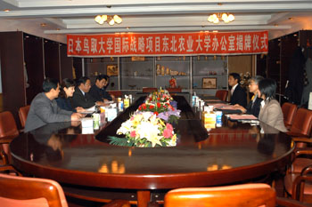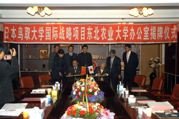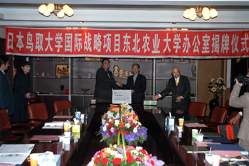 11月12日-17日期间,以校长能势隆之教授为团长的日本鸟取大学访问团一行4人访问我校。11月17日,东北农业大学校长李庆章与日本鸟取大学校长能势隆之在我校国际交流中心正式签订国际战略项目合作协议,并为鸟取大学国际战略项目东北农业大学办公室举行揭牌仪式。