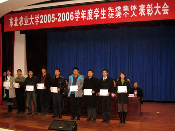 11月22日,2005—2006学年度学生先进集体、优秀个人表彰大会在图书馆一楼学术报告厅召开。校党委书记刘世常,副校长包军、张长利、刘荣,纪检委书记李潮江出席了会议。校长助理董广芝主持会议。