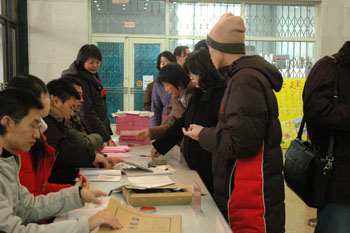 11月24日早7时,我校主楼大厅的中心投票站一幅鲜艳的五星红旗烘托出庄严而又喜庆的氛围,参加选举的师生们早早排起了长队,秩序井然地参加投票选举。作为香坊区一个独立选区,我校师生积极参加香坊区第一届人民代表大会代表选举。