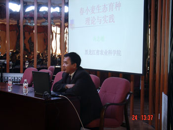 11月24日下午,在农学院多功能厅,由我校农学77级学生肖志敏首讲校友科技论坛系列讲座。肖志敏现任黑龙江省农科院副院长、研究员,他结合自己20余年的育种实践,主讲了题为《春小麦生态育种理论与实践》的学术报告。