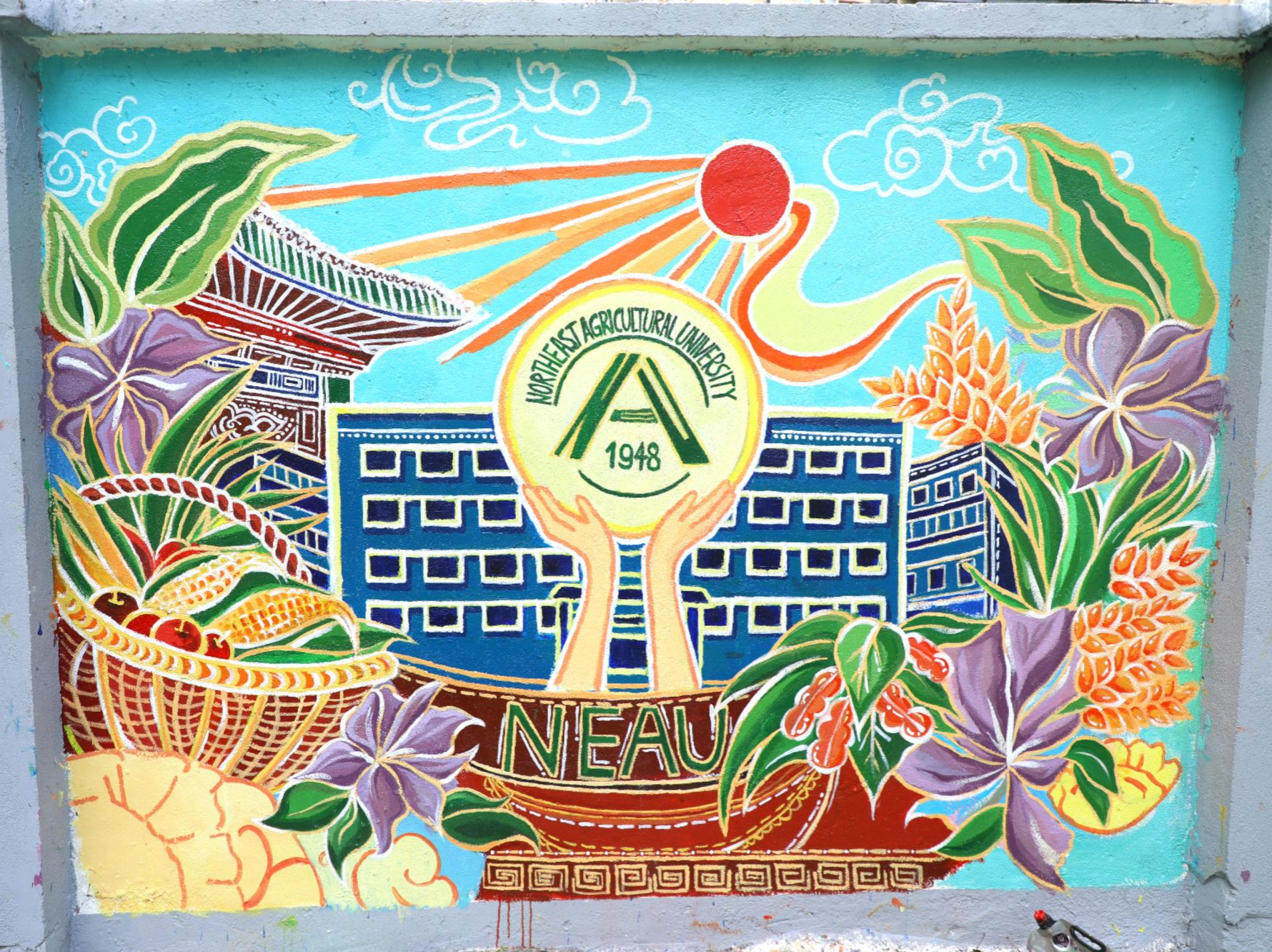 为进一步推进校园文化建设,美化校园环境,增强师生爱校如家的荣誉感与归属感,近期,由宣传部主办、艺术学院承办的西环路主题文化墙绘创作活动成功开展,本次活动吸引了艺术学院、园艺园林学院、文理学院百余名师生共同参与,师生们以画笔为媒,将艺术创意元素融入到校园环境之中,为东农校园增添了一道充满文化内涵与活力的靓丽风景线。