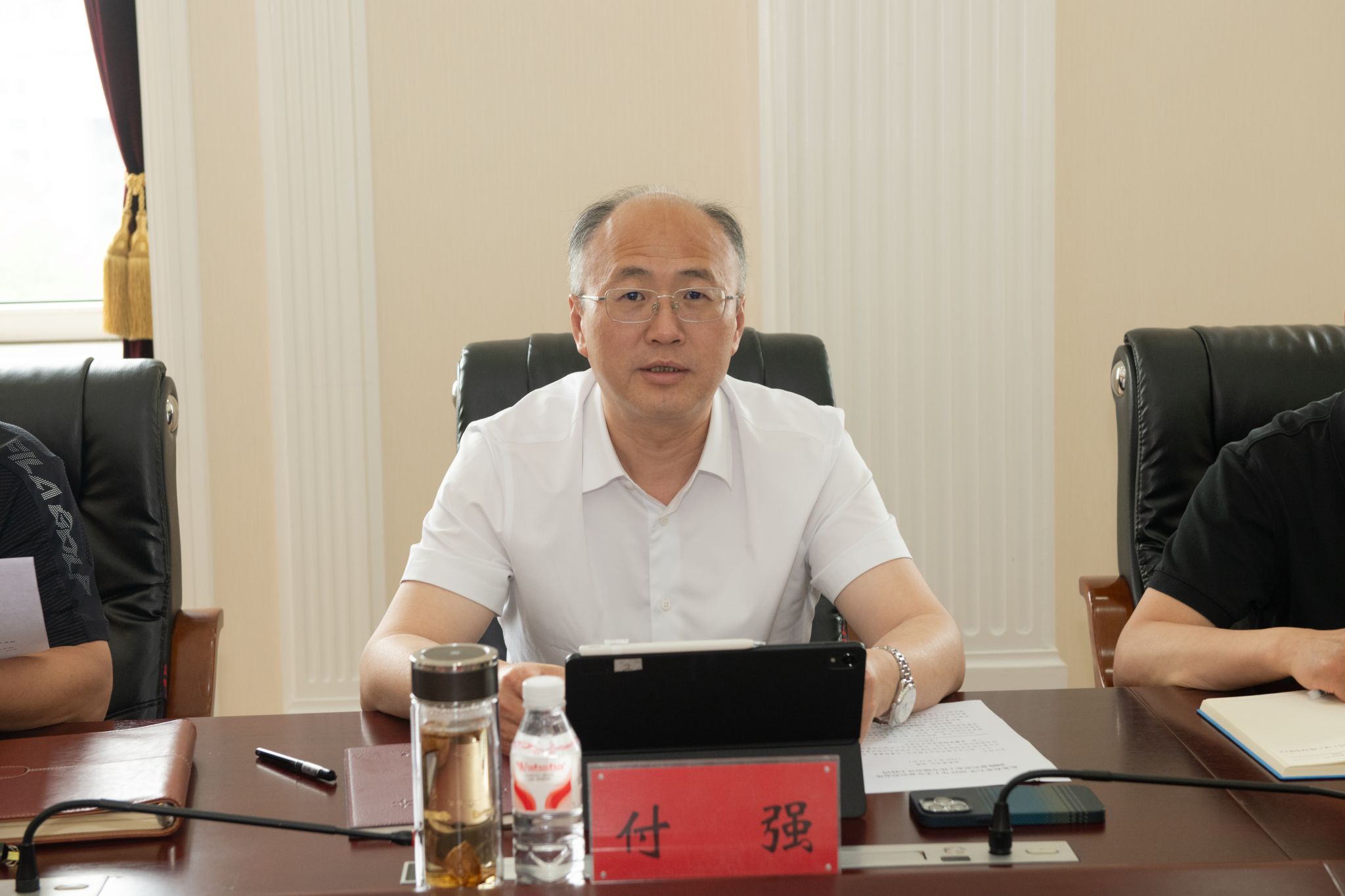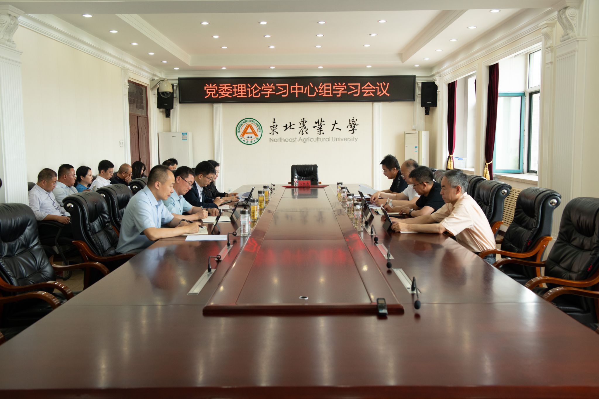 6月19日,我校召开党委理论学习中心组学习会议,传达学习习近平文化思想、习近平总书记关于意识形态工作的重要论述、《党委(党组)意识形态工作责任制实施办法》,并围绕意识形态工作进行专题学习研讨。校党委书记付强主持会议并讲话,校长刘竹青、全体在校校领导、党委常委参加会议。