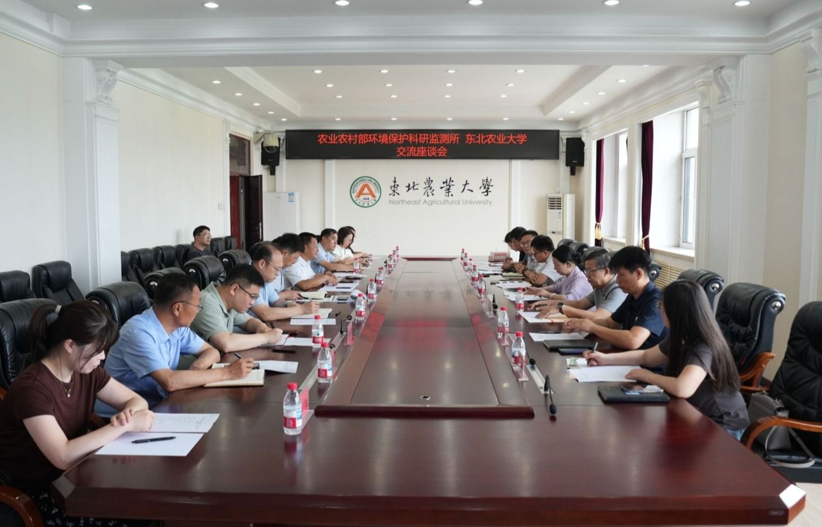 周莉详细介绍了农业农村部环境保护科研监测所的团队建设、科技创新、成果转化、社会服务等发展概况。寇胜利全面阐述了我校平台支撑和科学研究的整体情况;彭胜民详细介绍了我校人才培养及导师队伍等方面的基本情况。双方就联合开展科学研究、人才培养、项目申报、成果转化以及共享和开放平台资源等方面展开深入讨论。