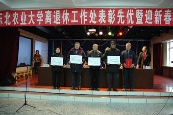 会上,离退休人员工作处党委书记张七龙宣读了《关于表彰先进党支部、优秀共产党员和优秀党务工作者称号的决定》,总结了过去两年中离退休人员工作处党委和全体党员在学习和工作中取得的阶段性成绩。为继续发挥党支部的战斗堡垒作用和党员先锋模范作用,离退休人员工作处共表彰了优秀党员30名、优秀党务工作者12名、先进党支部6个。校工会主席刘德深等领导向接受表彰的同志表示祝贺,并颁发证书。