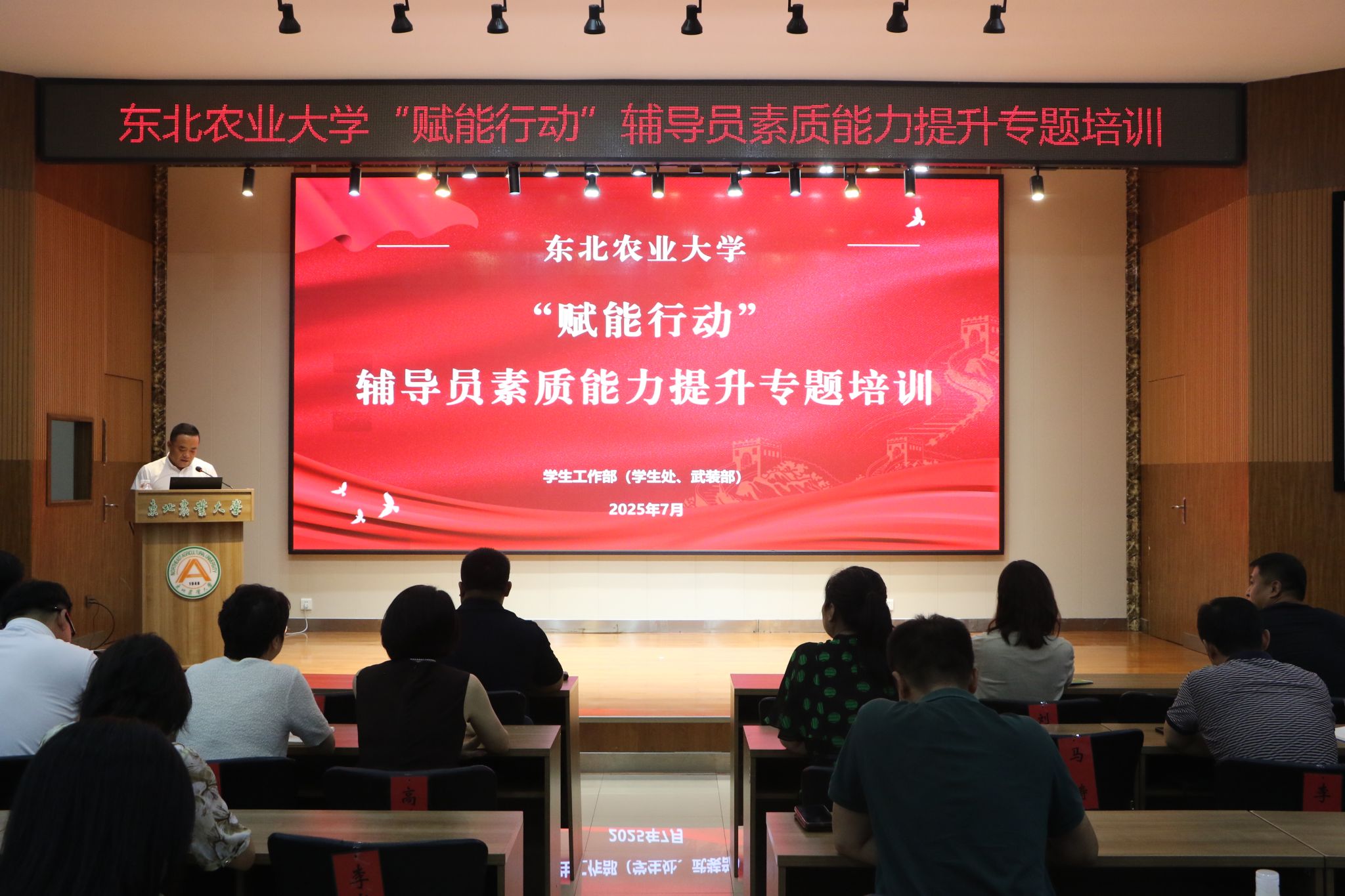 为深入学习贯彻党的二十届三中全会和全国教育大会精神,落实立德树人根本任务及我校第四次党代会精神,持续推动我校辅导员队伍专业化、职业化发展,加强队伍作风建设,提升队伍凝聚力,7月14日下午,由学生工作部组织的“赋能行动”辅导员素质能力提升专题培训暨新入职辅导员岗前培训开班式在音乐厅举行。学生工作部(学生处、武装部)部(处)长汪志君出席活动并讲话,全国最美高校辅导员、全国辅导员年度人物辽宁大学刘巍教授应邀作专题报告。各学院党委副书记、全体辅导员、学生工作部(学生处、武装部)相关工作人员参加了培训。活动由辅导员队伍建设科科长黄月明主持。