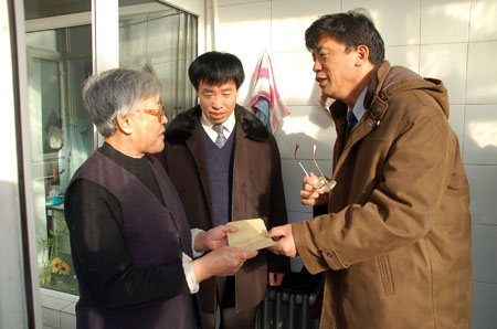 2月12日上午,在校工会主席刘德深的带领下,校工会副主席满宝泉、金大伟,农学院书记王成贵,园艺学院书记陈国昌,离退休工作处长宋贵发,总务部工会主席姚铭臣,工程学院工会主席康德福及动科学院办公室主任王强等对我校特困、重病职工及其家属进行了走访慰问,向他们表达了学校对他们的关心,详细询问了他们的生活情况,并向他们赠送了慰问金和慰问品,希望他们能够度过一个安乐祥和的春节。受到慰问的职工感谢学校的对他们关心,并表示一定努力战胜困难,积极健康地生活。