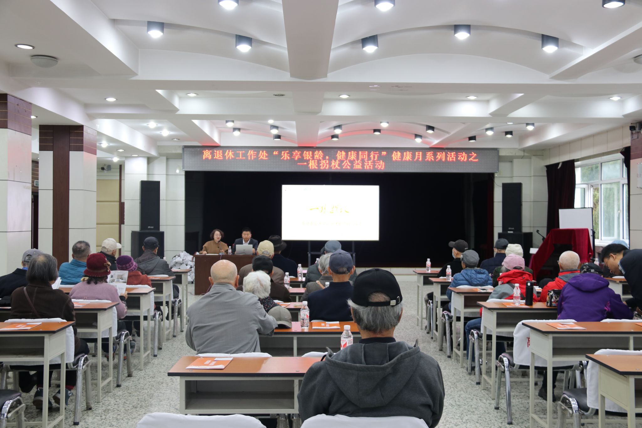 10月14日上午,离退休工作处联合泰康之家·龙园医养社区,在校离退休活动中心举办了“一根拐杖”防跌倒公益捐赠活动。此次活动聚焦老年人常见的跌倒风险,通过公益捐赠防跌倒拐杖,普及防跌倒知识,让老同志们能够安心出行,同时,为健康月活动奠定了安全、关爱的基调。
