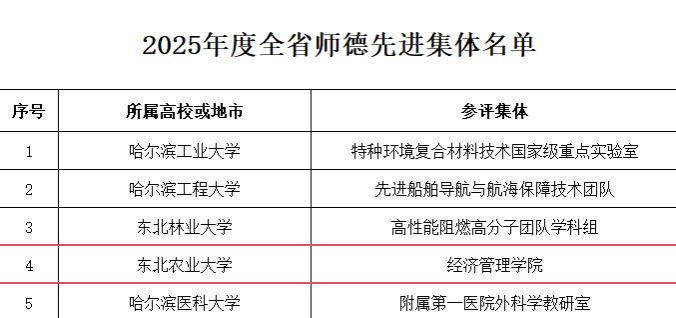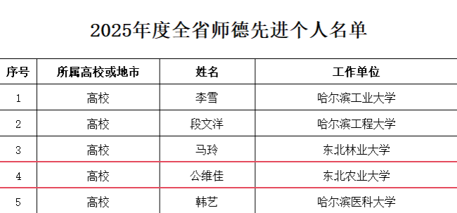 为大力弘扬教育家精神,扎实推进高质量教师队伍建设战略行动,筑牢广大教师为党育人、为国育才初心使命,近日,黑龙江省教育厅发布了《关于表彰2025年度全省教育系统师德先进集体和师德先进个人的决定》。我校经济管理学院获“黑龙江省师德先进集体”称号,工程学院公维佳教授获“黑龙江省师德先进个人”称号。