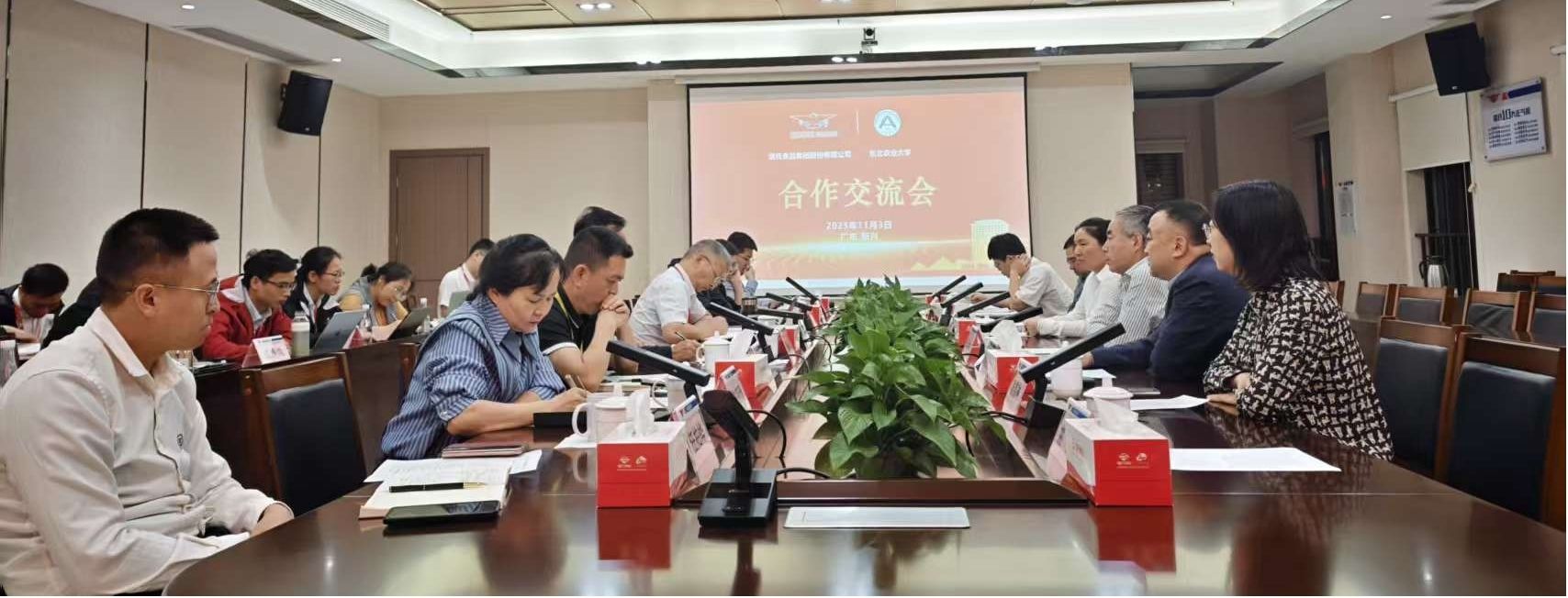 陈瑞爱对学校在畜禽领域的科研与教学成果表示赞扬,并详细介绍了大华农项目背景、研究方向与西江实验室在基因改良、健康监测等方面的平台优势,希望未来双方在科研创新与人才共育方面深化合作。李金龙、周斌、张鑫琳分别就学院学科建设、科研进展与育人成果作了进一步介绍。孙占峰指出,在健康养殖、人工智能等前沿领域,校企双方蕴藏着巨大的合作潜力,期待通过校企共建实现资源共享、技术共研与人才共育。